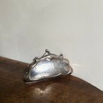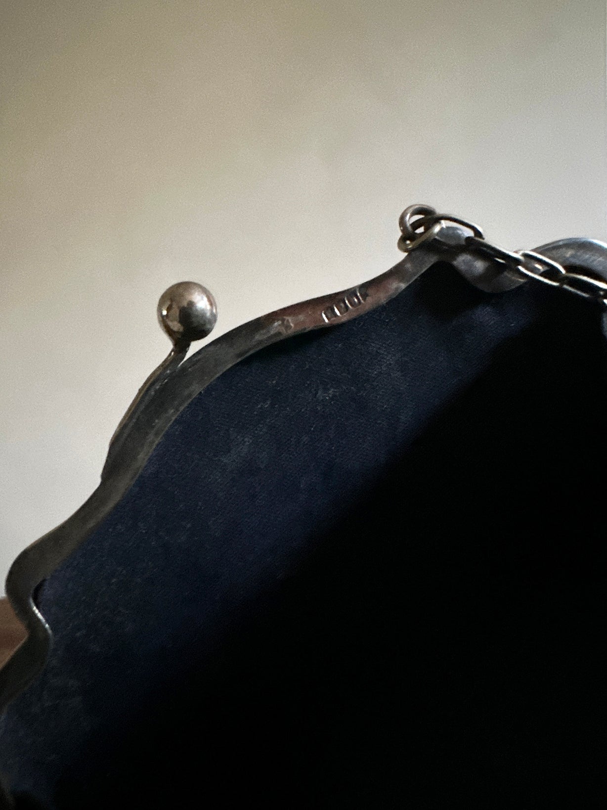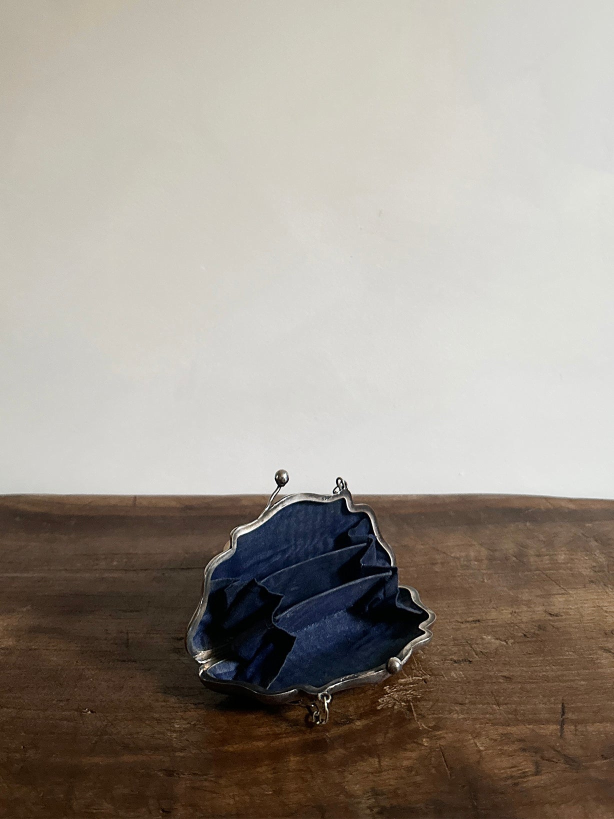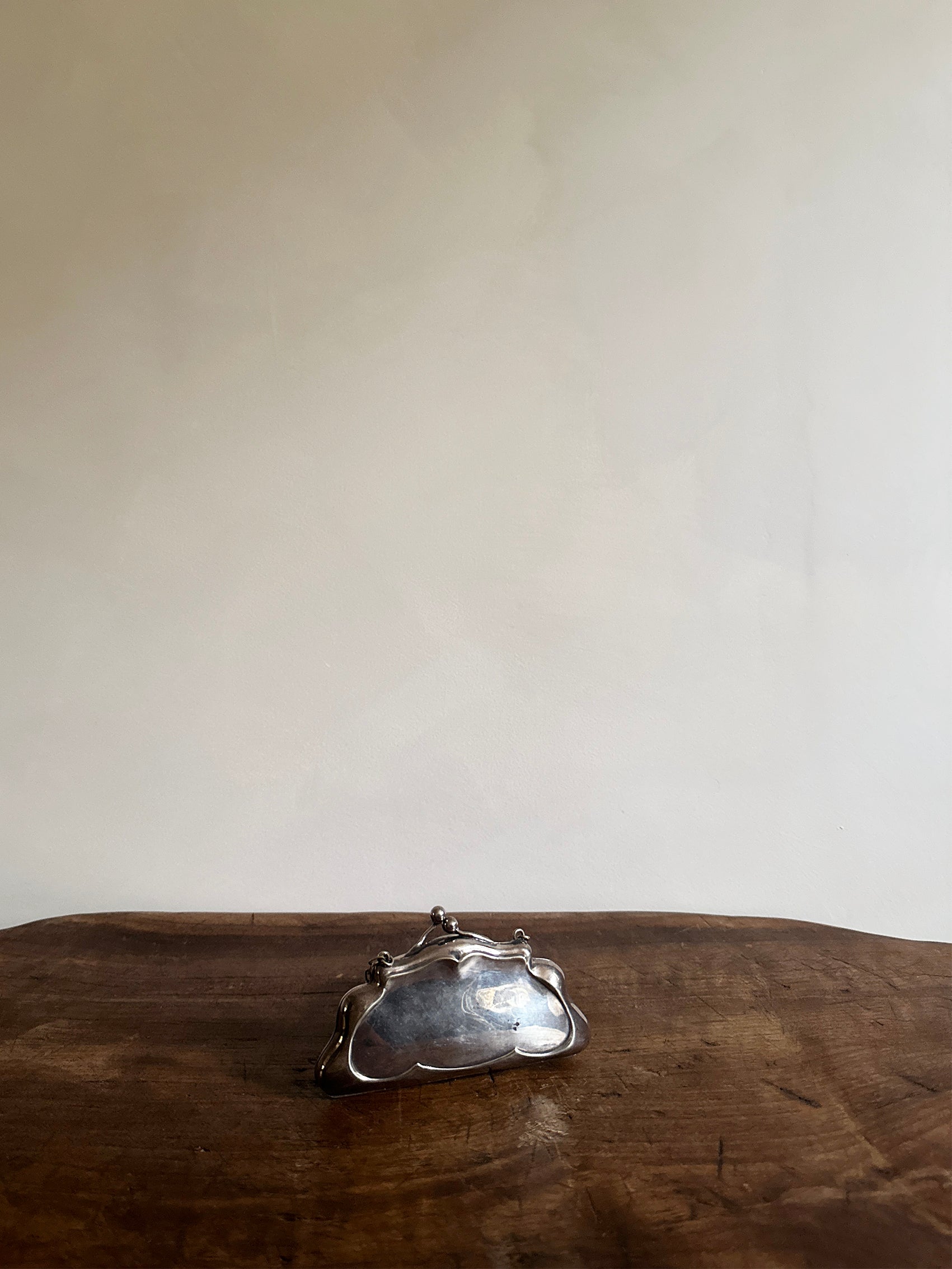Origin: an antique silver concertina coin purse, circa 1918. Size: 2.75" high (7" w chain) x 5" wide x 0.75" deep