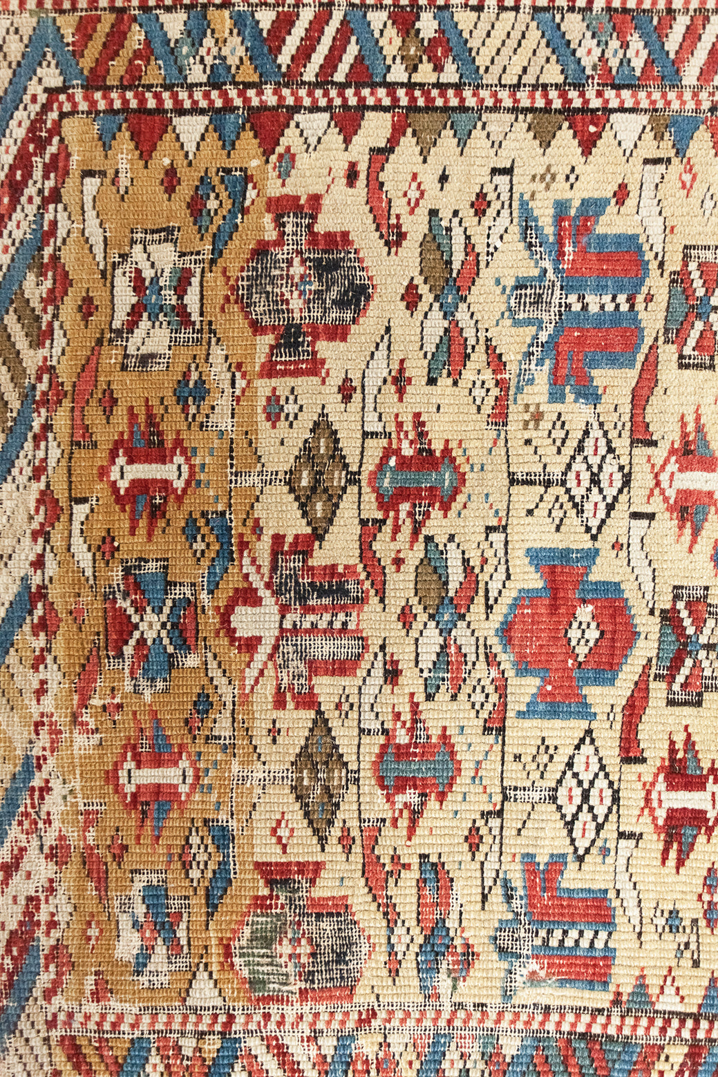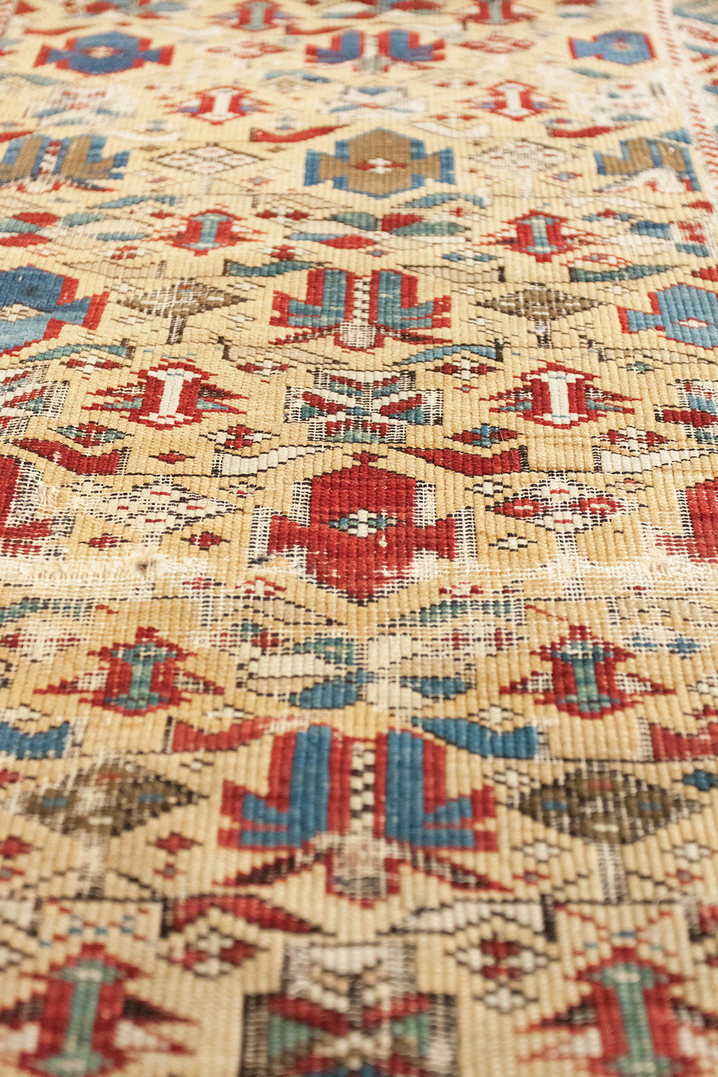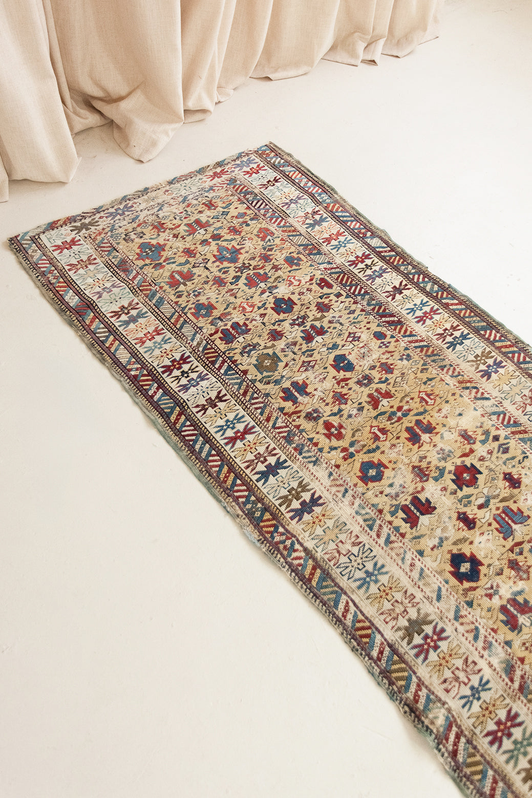 All of our rugs are professionally shampooed prior to shipping. As is the nature of antiques, you'll sometimes find little fibres that shake out when you first lay it down. This is perfectly normal and nothing a quick vacuum won’t solve.