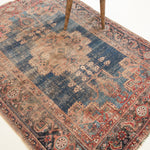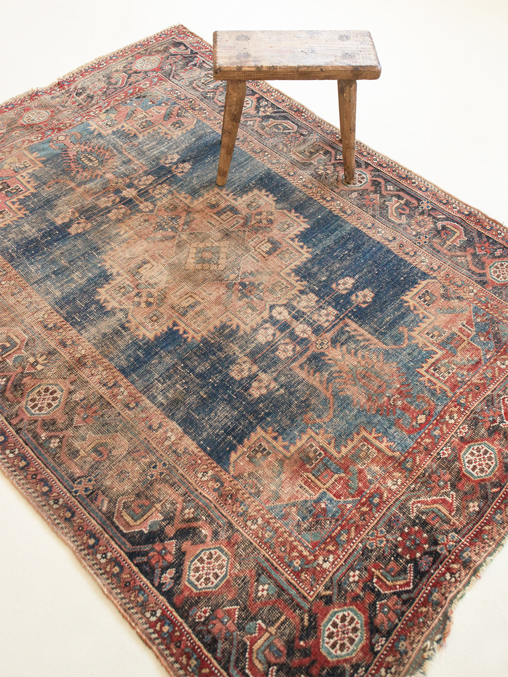 The Afshar tribe migrated to Iran in the 11th century, and settled in the southern regions. Their distinctive rug designs are known for geometric patterns characterised by a central medallion and oversized corner details. Nature-inspired elements like paisley (representing leaves) and stylised bird motifs can often be spotted in these rugs, and the palettes are typically warm and earthy, reflecting the surrounding landscape. The reds were achieved with madder root and the deep blues with indigo plants, while light brown accents are often undyed camel hair.