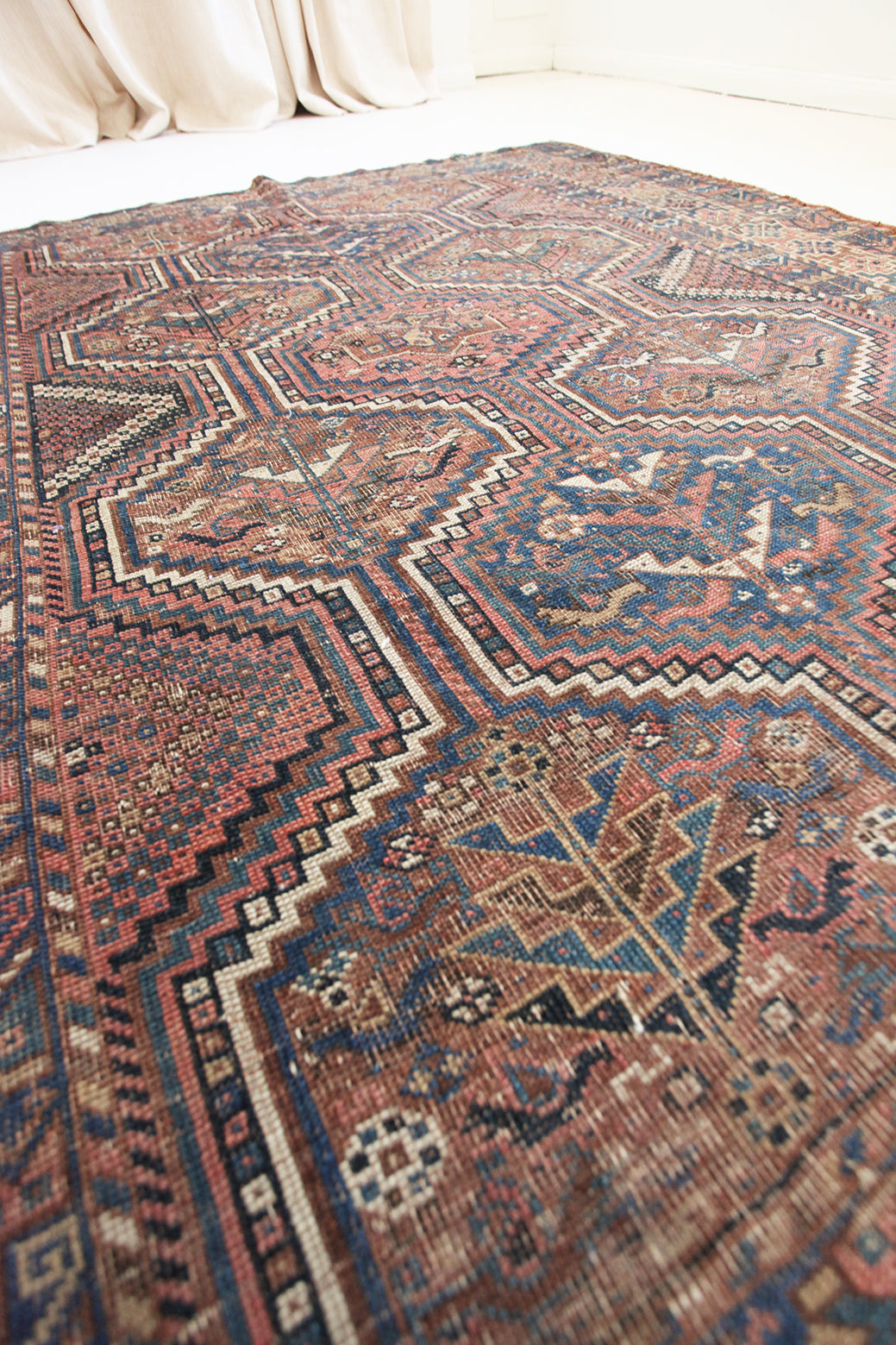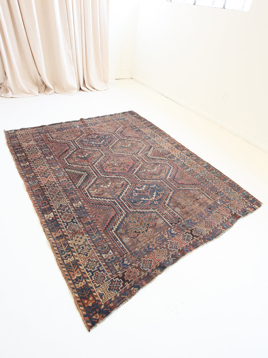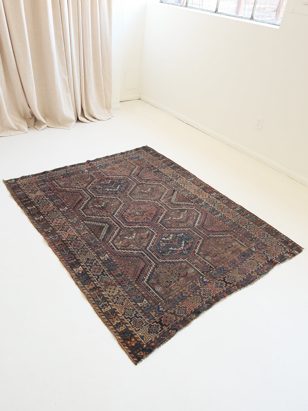 Because of the nature of these antique handmade rugs, irregularities are likely to exist and are not considered defects.