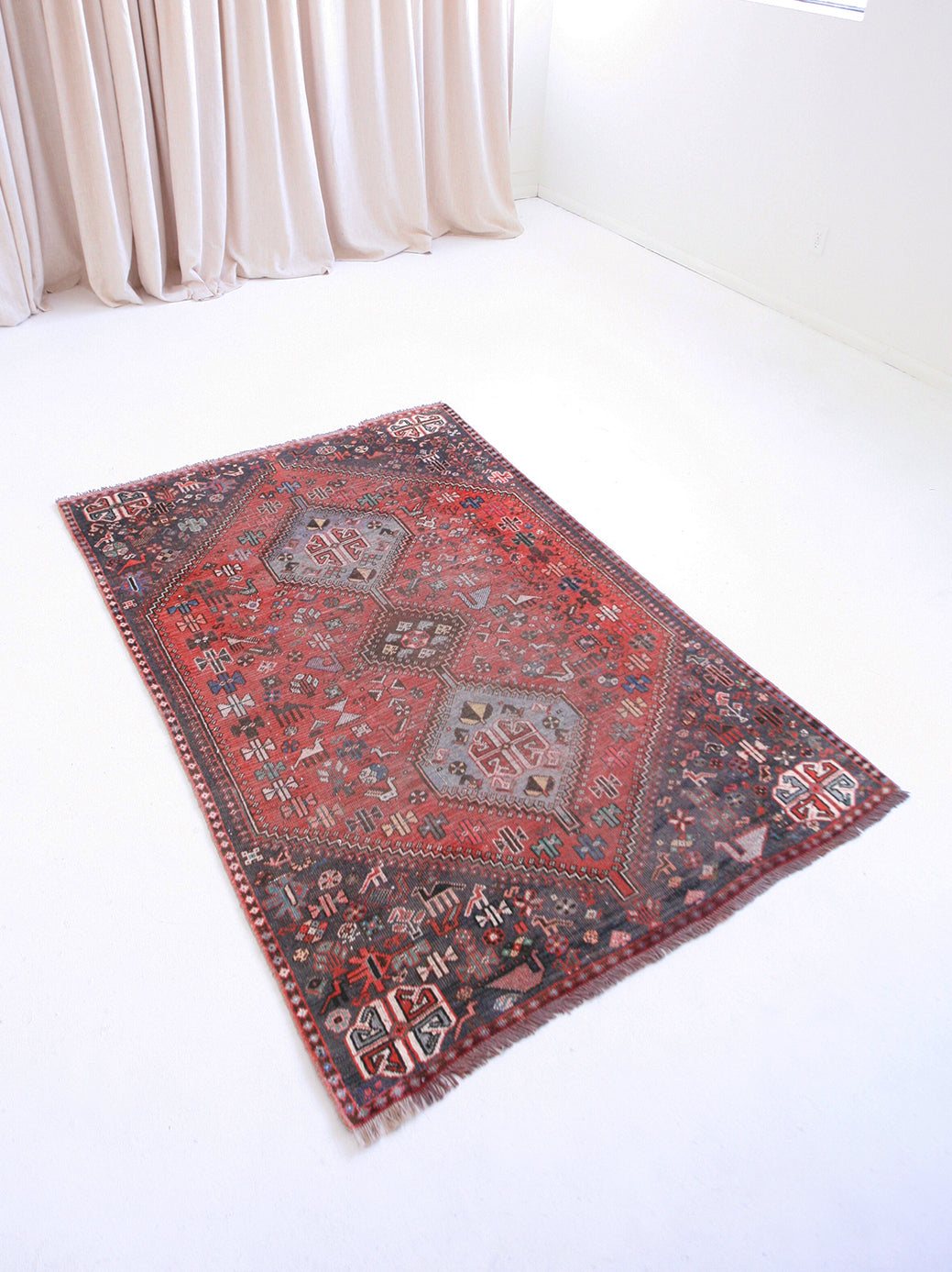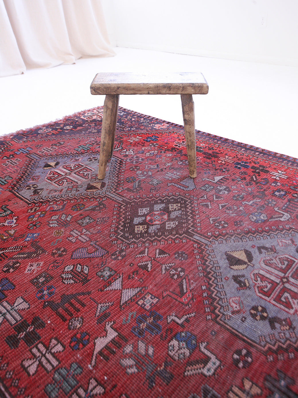 The history of rug weaving in Shiraz can be traced back to the 16th century, and their techniques and knowledge have been passed down from generation to generation. Stylistically, the rugs are renowned for their tribal designs and rustic charm, reflecting the rich nomadic heritage of the region with the inclusion of animals, plants and stick figures. The knot density of Shiraz rugs is usually lower than those from other regions, giving them a more relaxed feel that still stands the test of time.