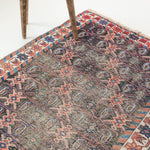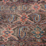 The Afshar tribe migrated to Iran in the 11th century, and settled in the southern regions. Their distinctive rug designs are known for geometric patterns characterised by a central medallion and oversized corner details. Nature-inspired elements like paisley (representing leaves) and stylised bird motifs can often be spotted in these rugs, and the palettes are typically warm and earthy, reflecting the surrounding landscape. The reds were achieved with madder root and the deep blues with indigo plants, while light brown accents are often undyed camel hair.