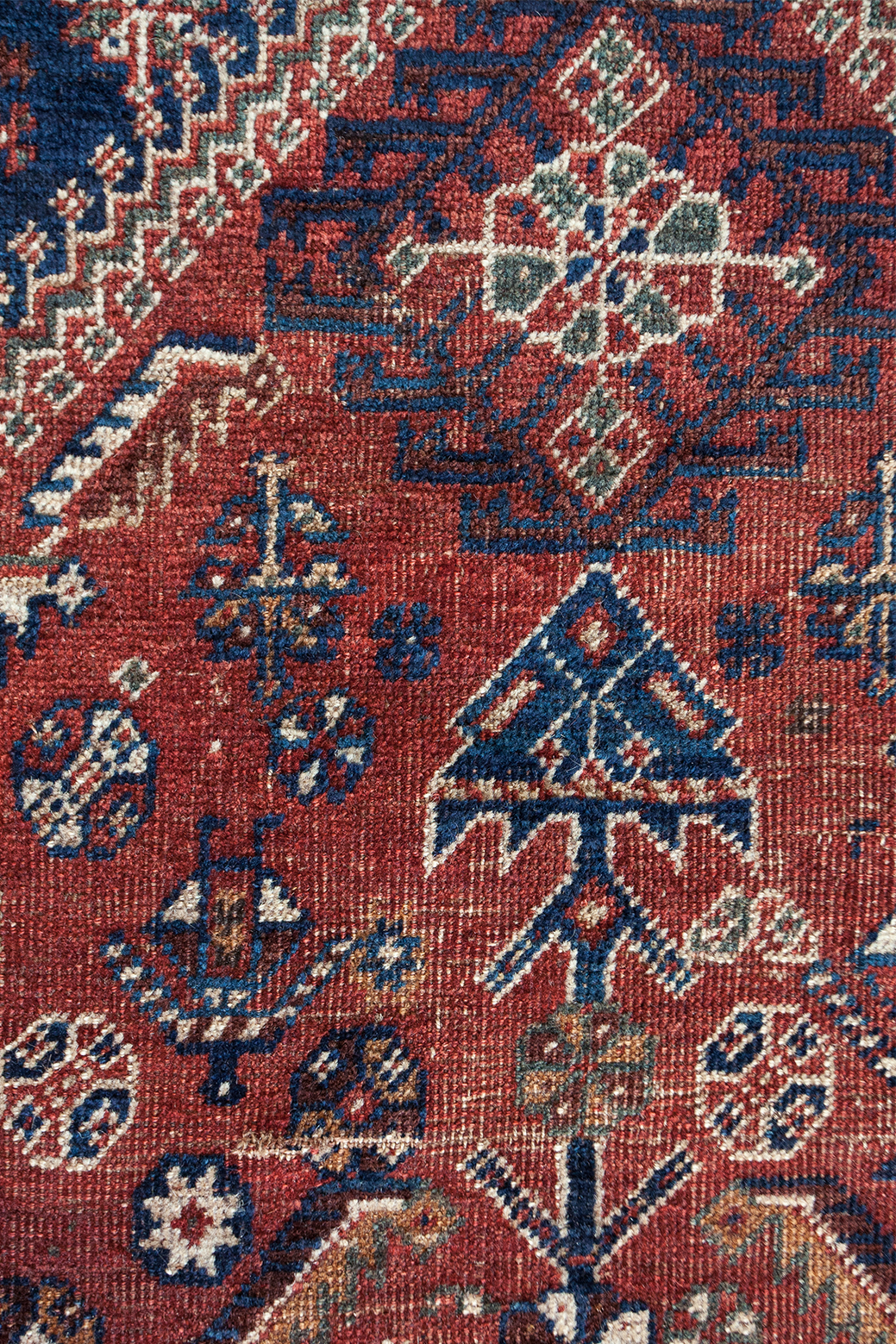 The Qashqai tribe would typically reside further south in the Zagros mountains. Each winter they would follow their flocks from the summer pastures in the highlands north of Shiraz, to the warmer winter grazing lands almost 500km to the south. Their goats provide milk, cheese and meat, while the sheep (shorn only once a year) produce tough, long-fibred wool that's ideal for rug weaving.