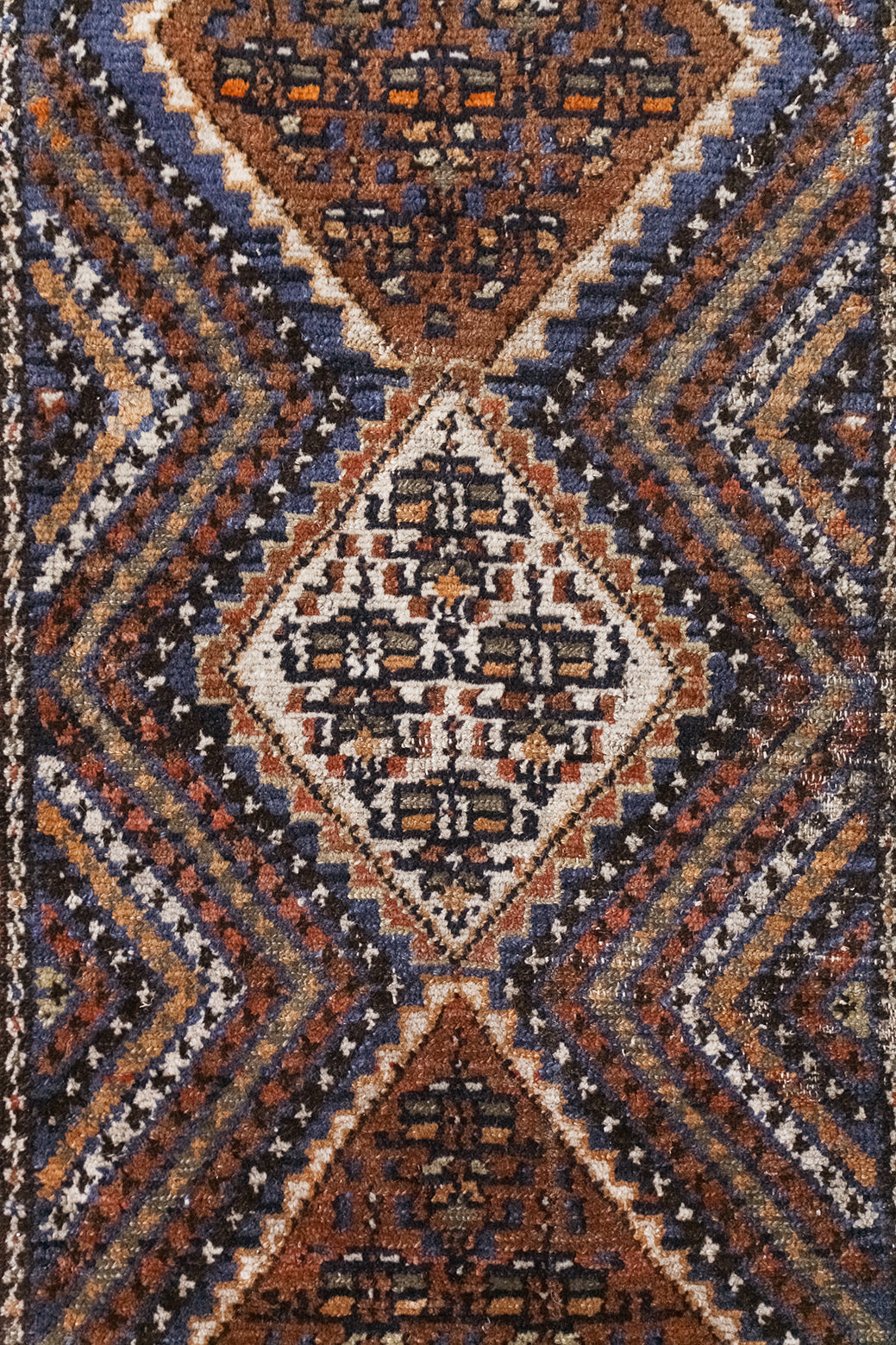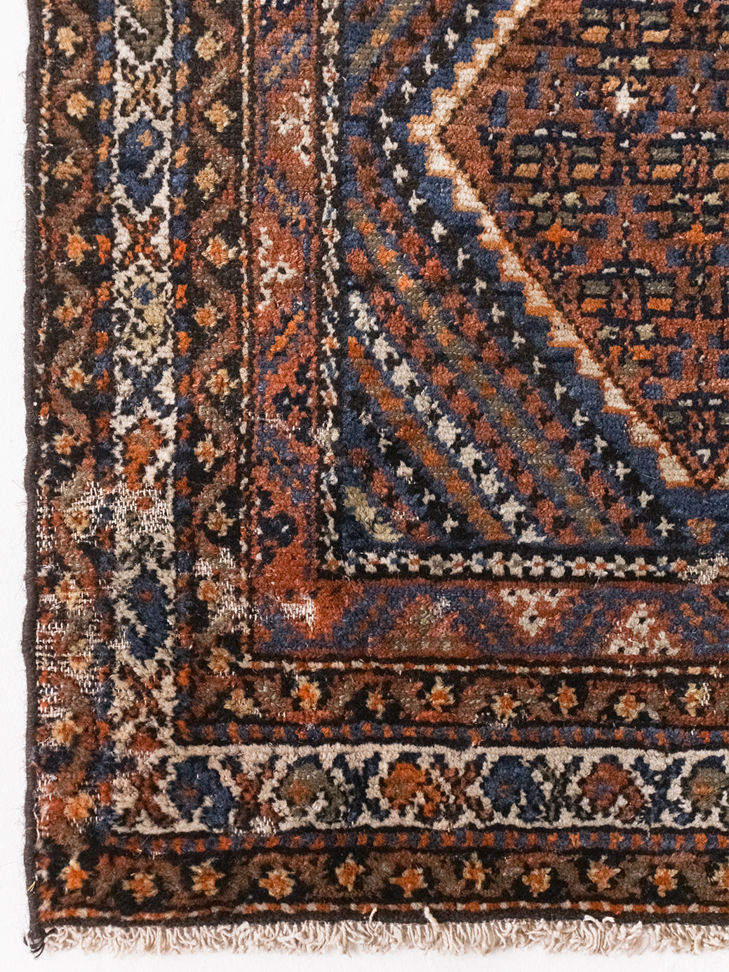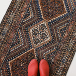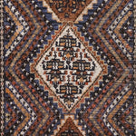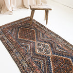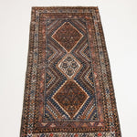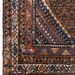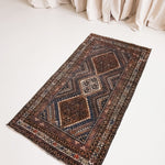 The Afshar tribe migrated to Iran in the 11th century, and settled in the southern regions. Their distinctive rug designs are known for geometric patterns characterised by a central medallion and oversized corner details. Nature-inspired elements like paisley (representing leaves) and stylised bird motifs can often be spotted in these rugs, and the palettes are typically warm and earthy, reflecting the surrounding landscape. The reds were achieved with madder root and the deep blues with indigo plants, while light brown accents are often undyed camel hair.
