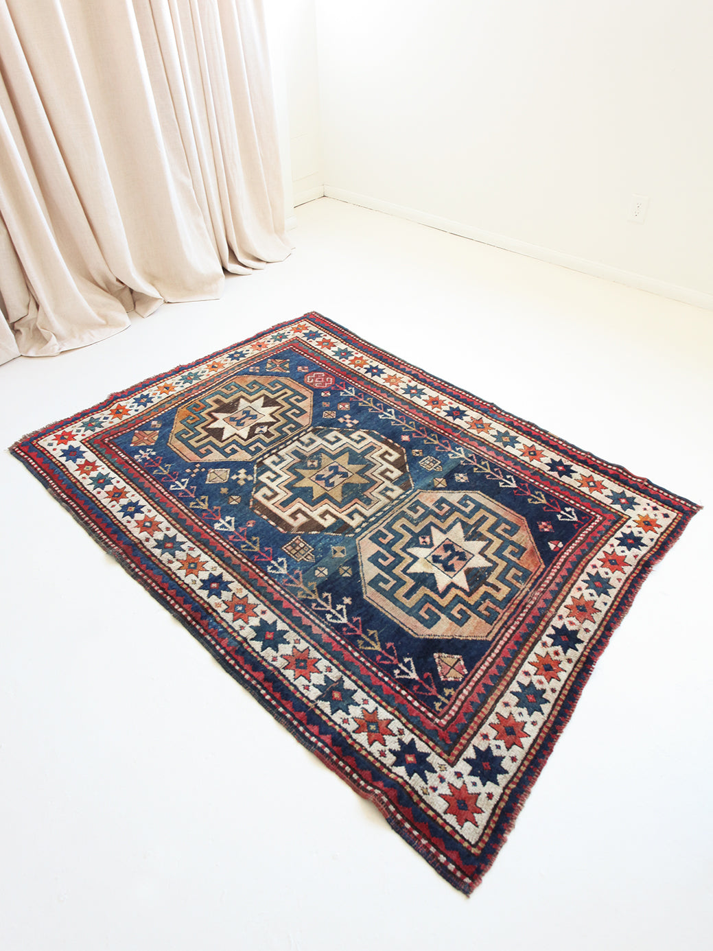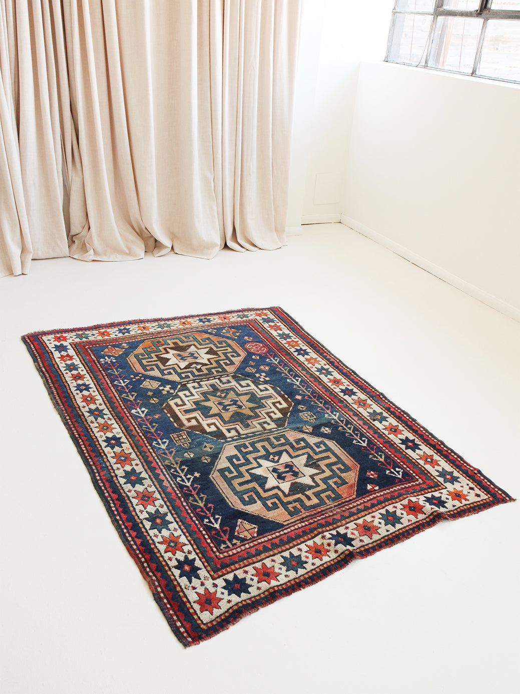 Kazak rugs stem from the Caucasus mountains which span modern-day Armenia, Azerbaijan and Georgia. The term refers to a wide range of rugs produced by weavers living in the regions' alpine villages, so stylistically there's quite a lot of variation. As a melting pot of culture, you'll notice a blend of Persian motifs, geometric Turkish patterns and Russian-inspired floral designs. Rug-making techniques were honed and passed down here, making Kazak rugs some of the most hard-wearing and ideal for high traffic areas.