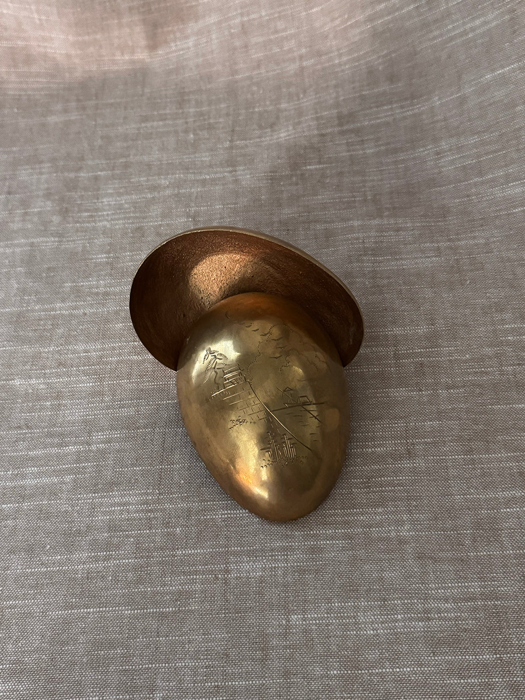 Origin: Heavyweight Chinese brass trinket box with landscape etching