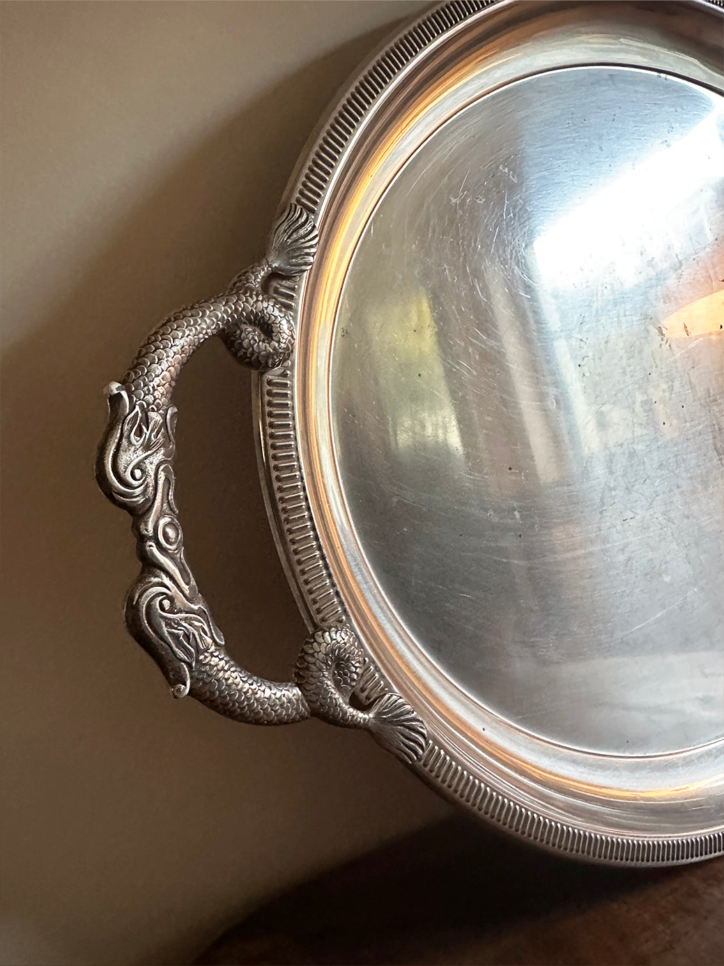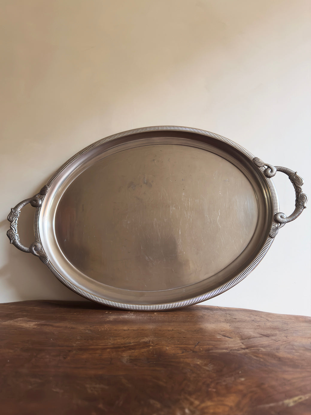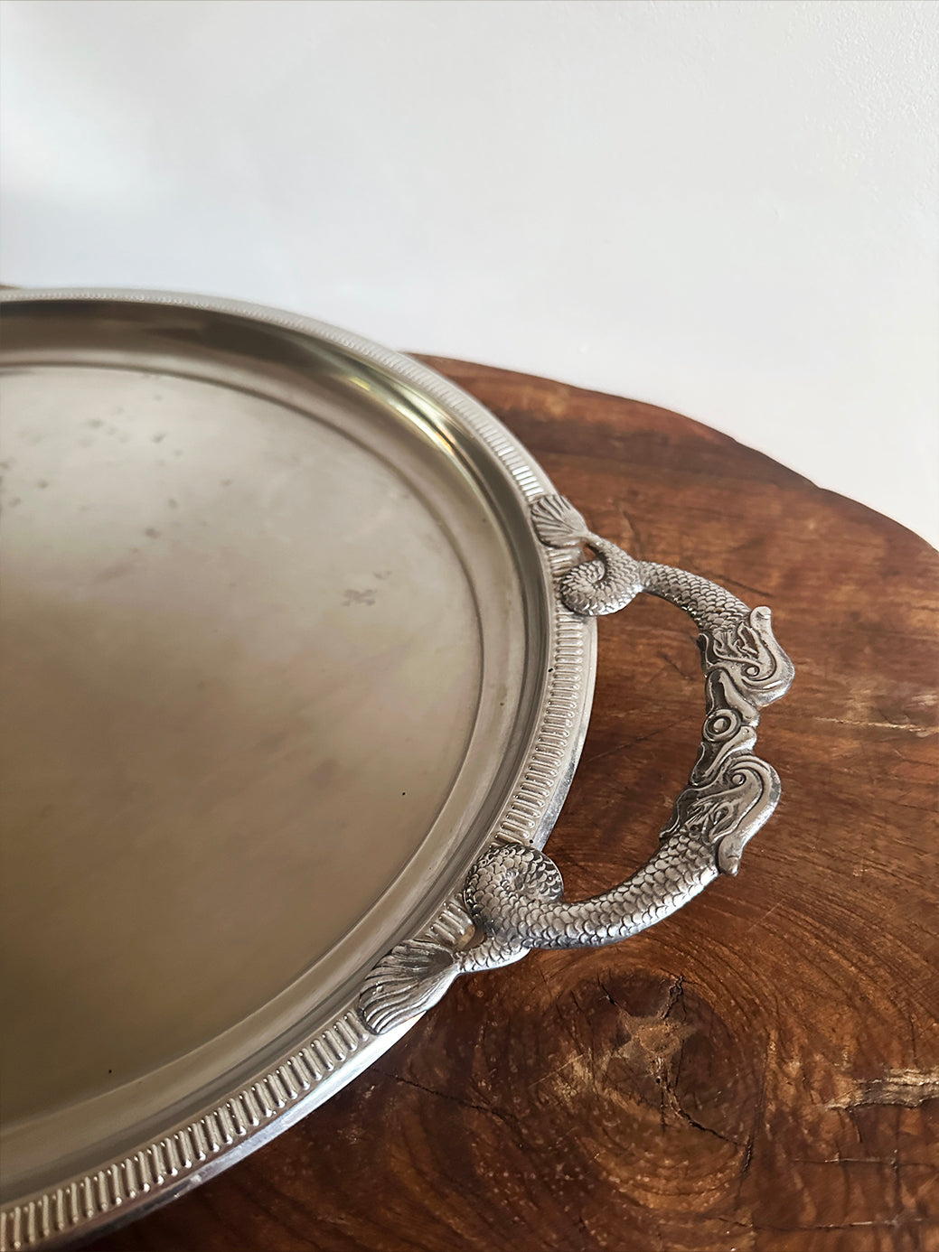 Origin: a vintage Jean Couzon serving platter with decorative fish handles Size: 23.5" wide x 15.25" deep x 1" high