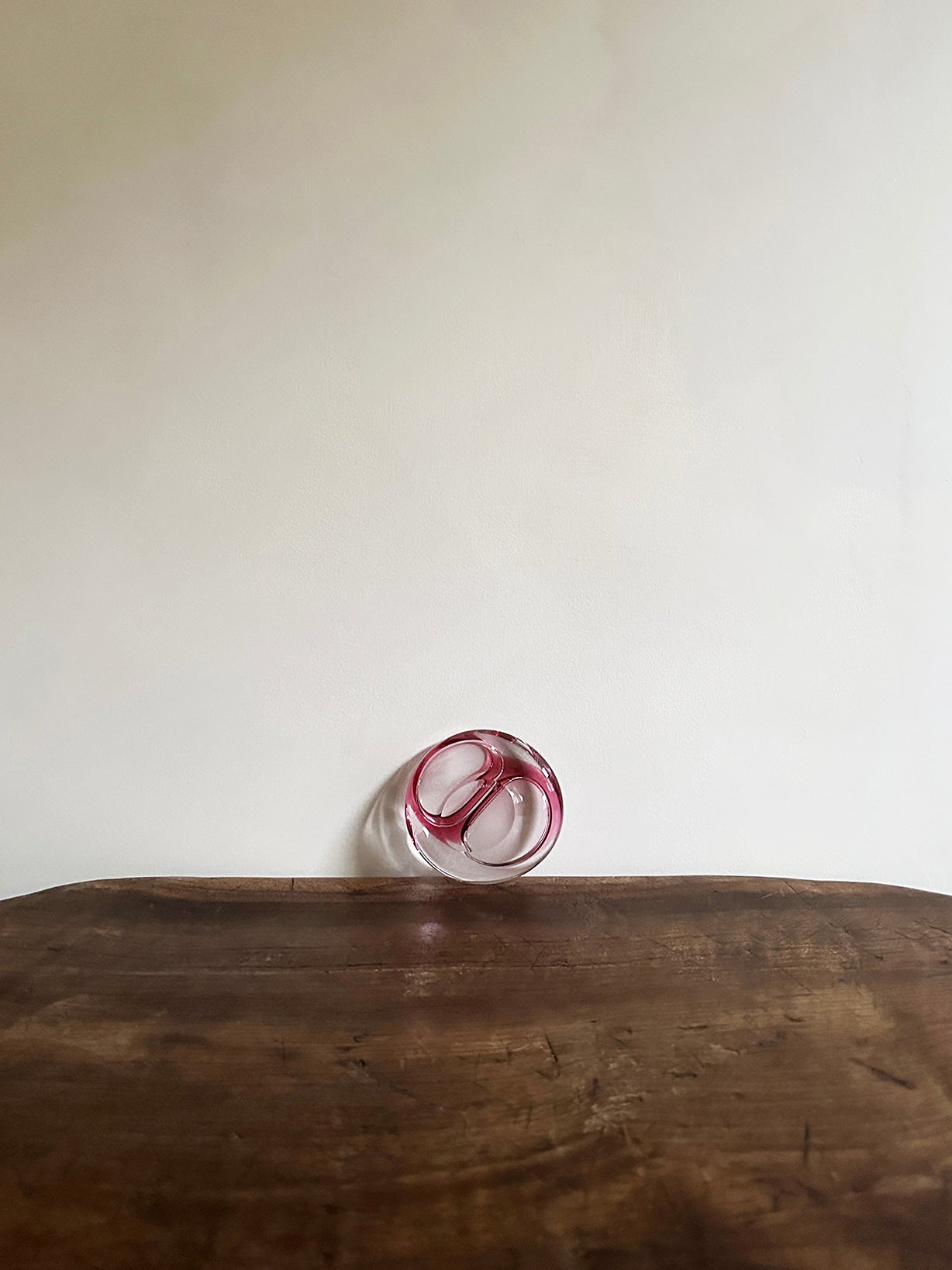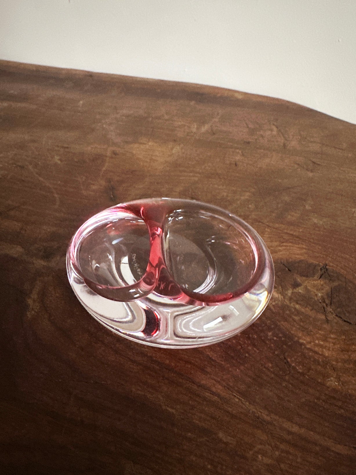 Origin: a hand-blown Murano Sommerso trinket dish in pink and clear glass. Signed Christian Zinsack.