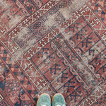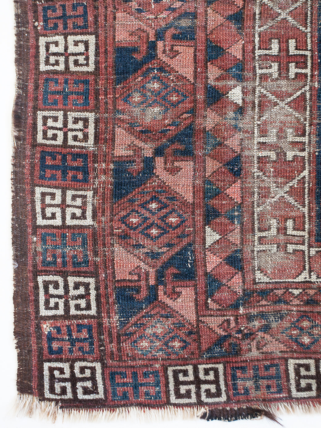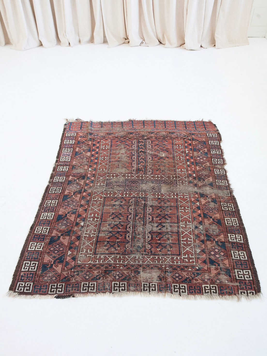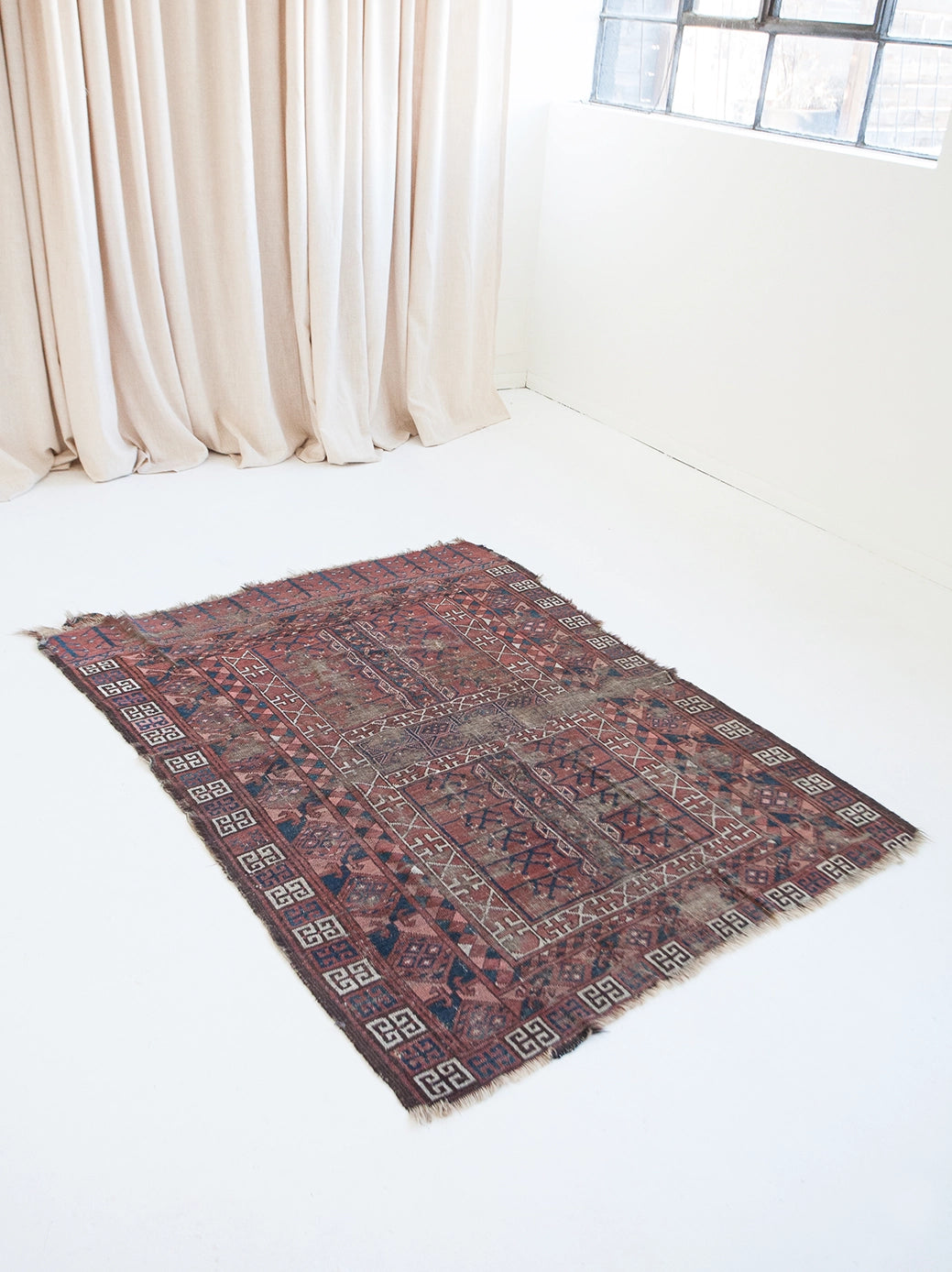 Baluch rugs were woven by the nomadic Baluchi tribes using a combination of hardy natural materials such as cotton, wool, goat and camel hair. Their designs usually comprise a singular rectangular or hexagonal pattern repeated throughout. You're unlikely to see many Baluch rugs on Frances Loom simply because they're often too red for us. However, whenever we find one in softer coral or camel hues, they tend to be some of our absolute favorites.