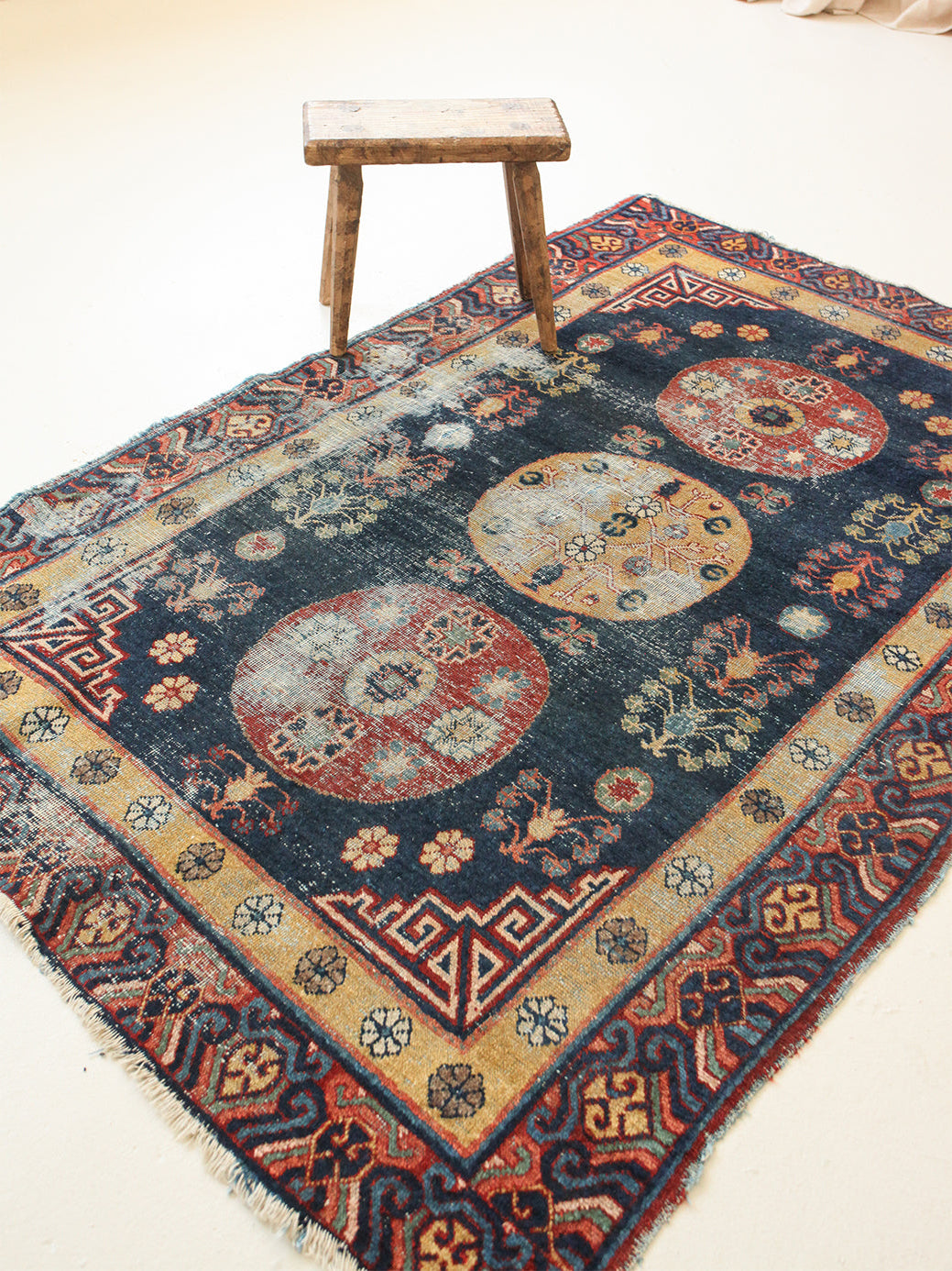 Inspired by the bold colors and art deco designs synonymous with East Asian rugs (think dragons and clouds, waves, and elaborate florals), we've curated our own collection of naturally worn, one-of-a-kind antiques that blend the FL aesthetic with the new (to us) designs.