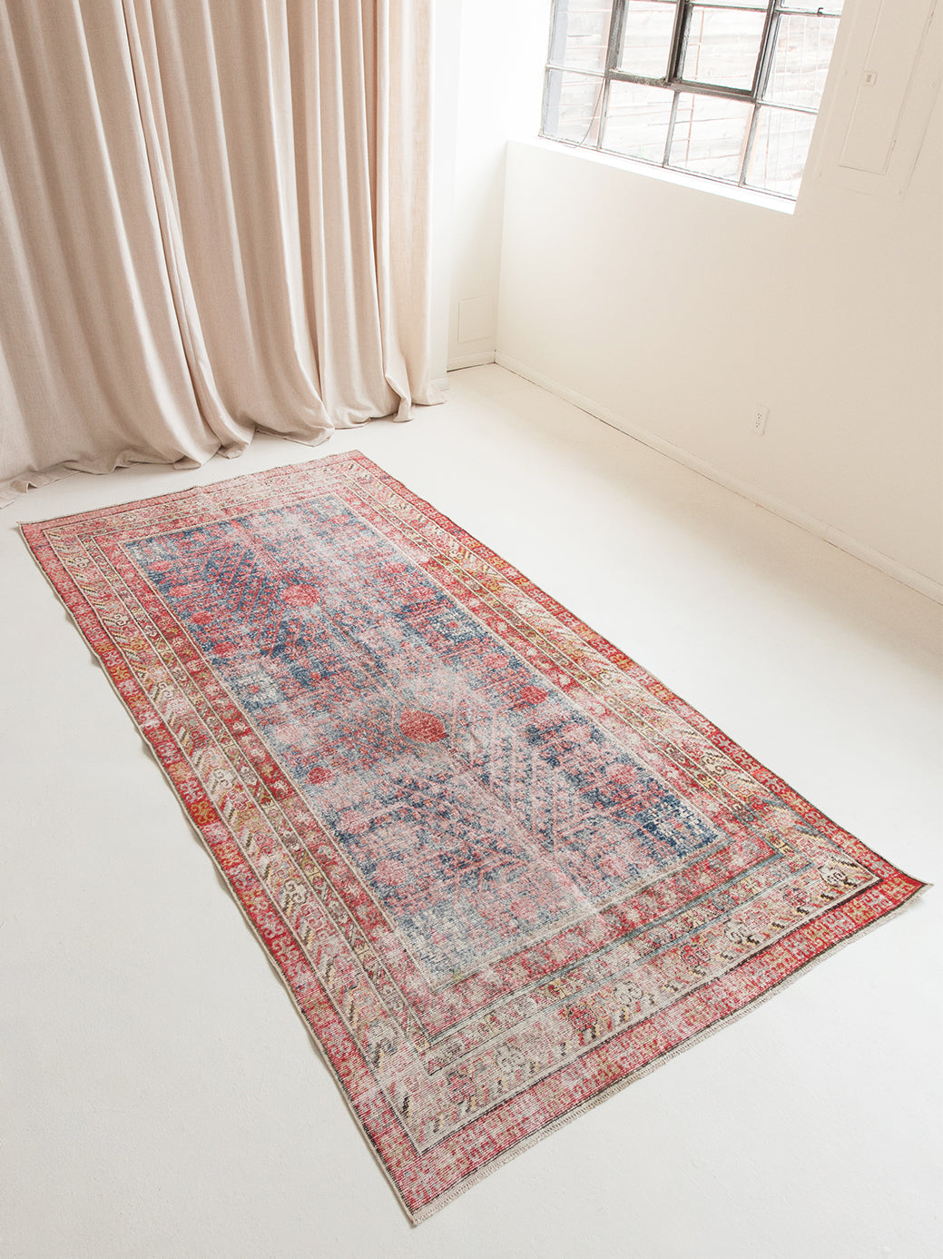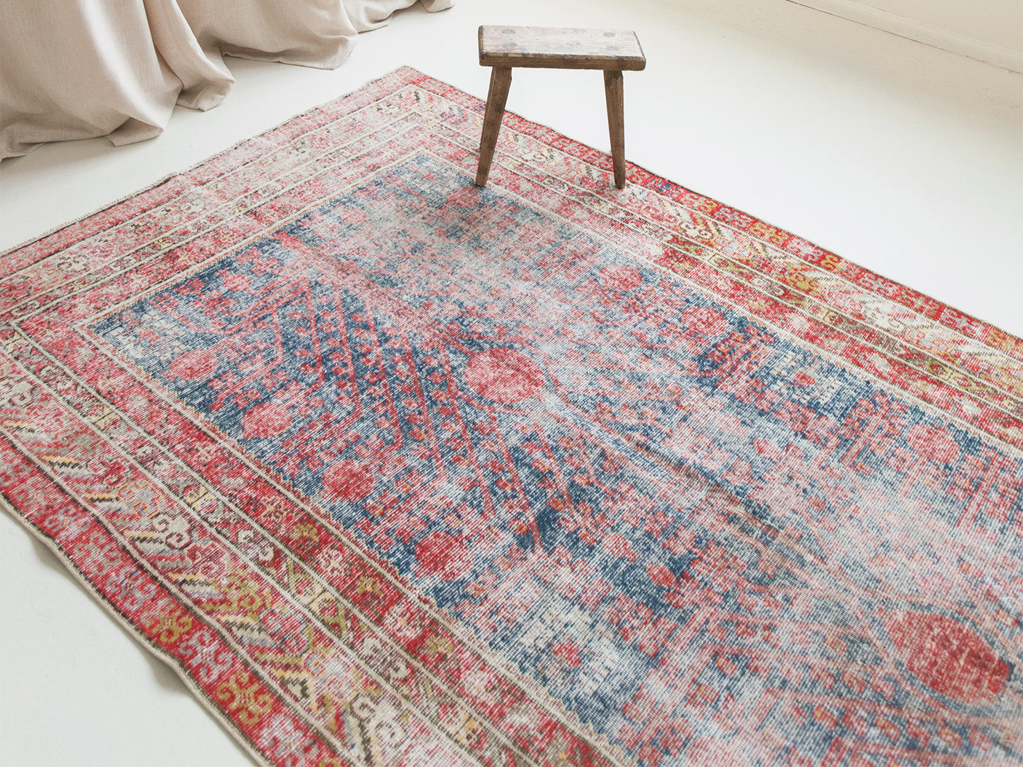 Inspired by the bold colors and art deco designs synonymous with East Asian rugs (think dragons and clouds, waves, and elaborate florals), we've curated our own collection of naturally worn, one-of-a-kind antiques that blend the FL aesthetic with the new (to us) designs.