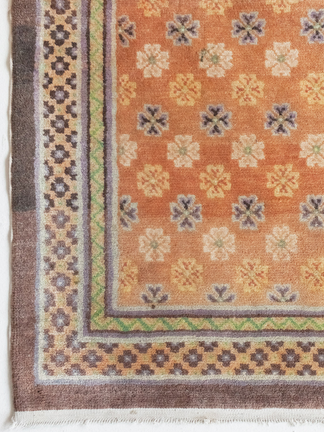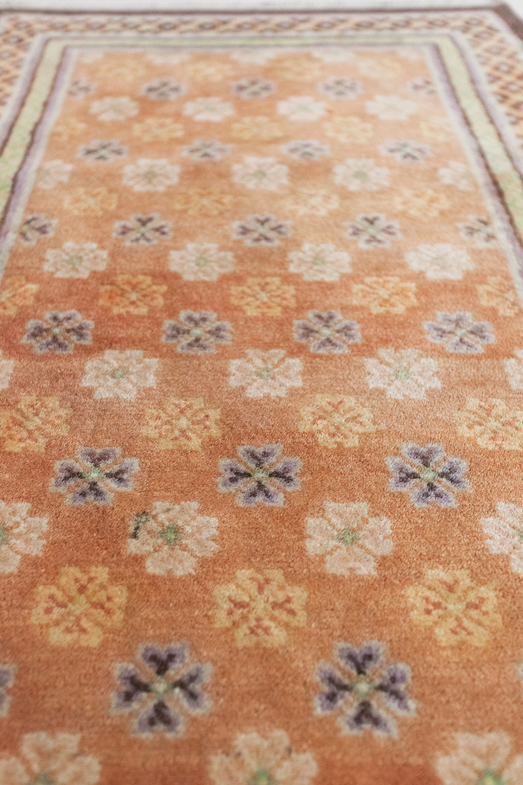 All of our rugs are professionally shampooed prior to shipping. As is the nature of antiques, you'll sometimes find little fibres that shake out when you first lay it down. This is perfectly normal and nothing a quick vacuum won’t solve.