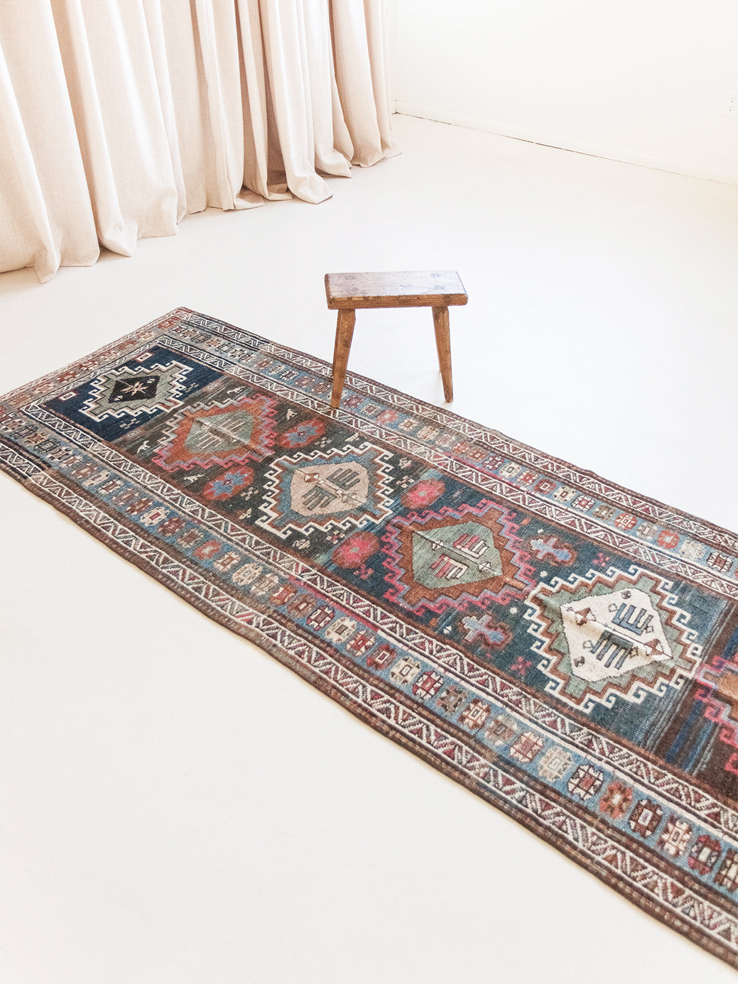 Kurdish rugs have a beautifully raw, soulful quality that makes them instantly recognizable. Woven by Kurdish tribes across western Iran and parts of Turkey, they’re known for their bold patterns, rich colors, and slightly rustic feel. The designs often mix strong geometric shapes with playful, almost painterly details - you can really see the hand of the weaver in every piece. Made from soft, durable wool and dyed with natural pigments, they’re the perfect mix of warmth and character. Each one feels personal, full of life, and effortlessly timeless.