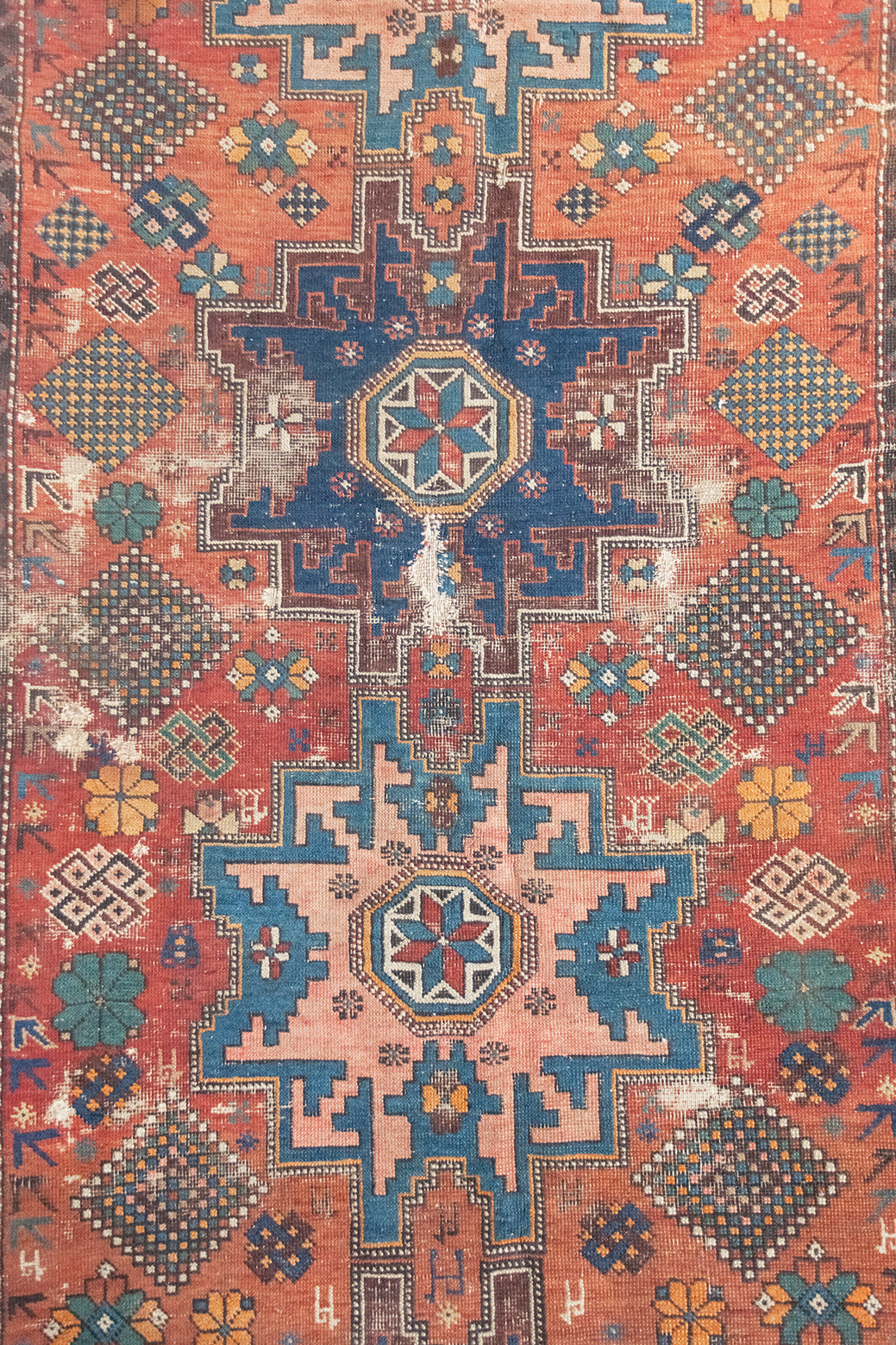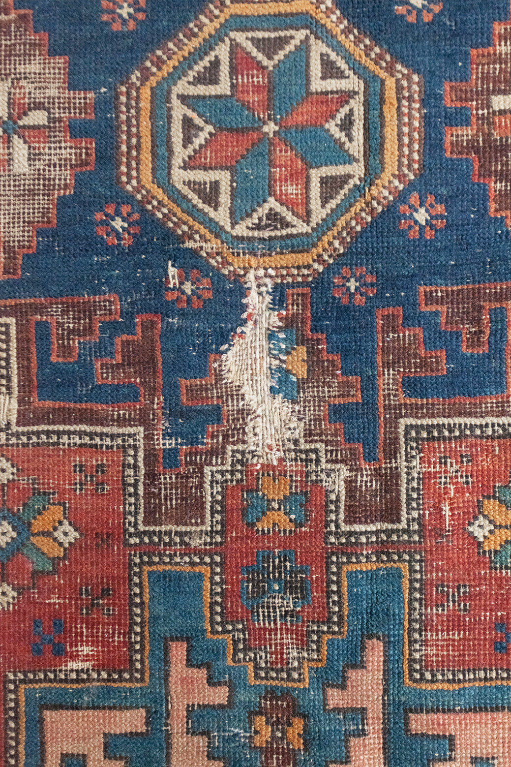 Among the most distinctive and collectible antique rugs are those from the Caucasus region. Woven by tribal and village weavers across the mountainous area between the Black and Caspian Seas, Caucasian rugs are known for their bold geometric designs, symbolic motifs, and rich, naturally dyed color palettes.