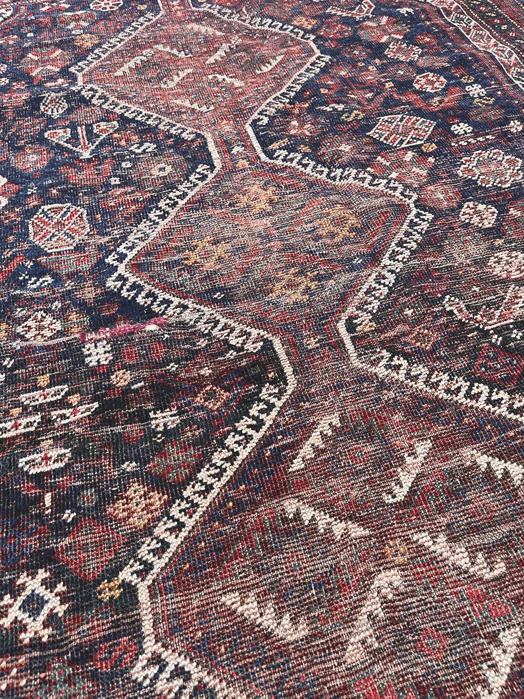 Because of the nature of these antique handmade rugs, irregularities are likely to exist and are not considered defects.