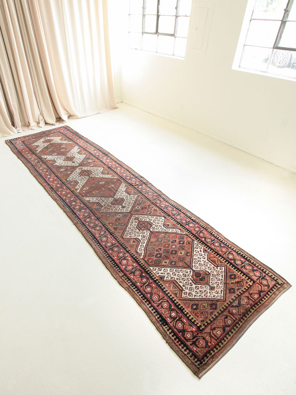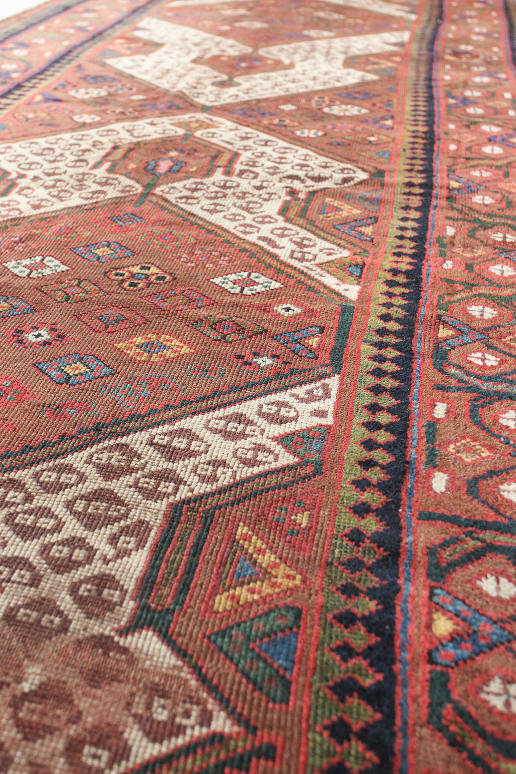 Because of the nature of these antique handmade rugs, irregularities are likely to exist and are not considered defects.