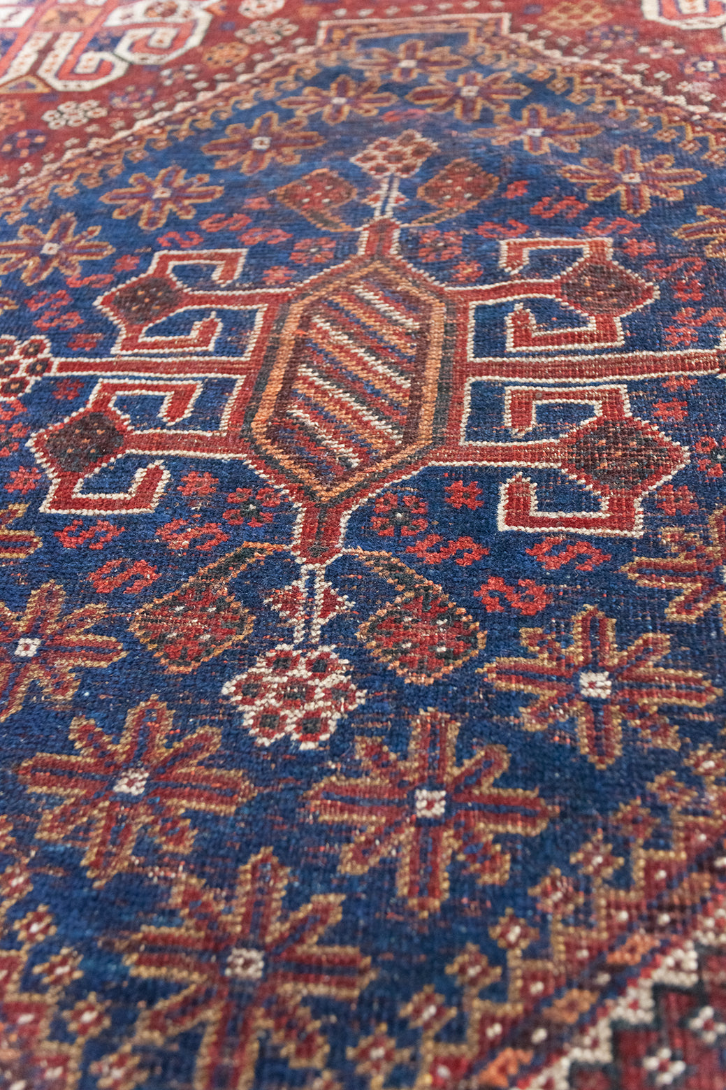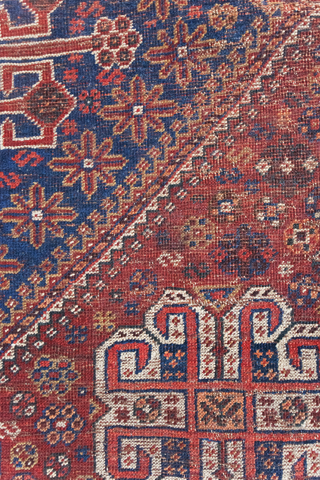 The Qashqai tribe would typically reside further south in the Zagros mountains. Each winter they would follow their flocks from the summer pastures in the highlands north of Shiraz, to the warmer winter grazing lands almost 500km to the south. Their goats provide milk, cheese and meat, while the sheep (shorn only once a year) produce tough, long-fibred wool that's ideal for rug weaving.