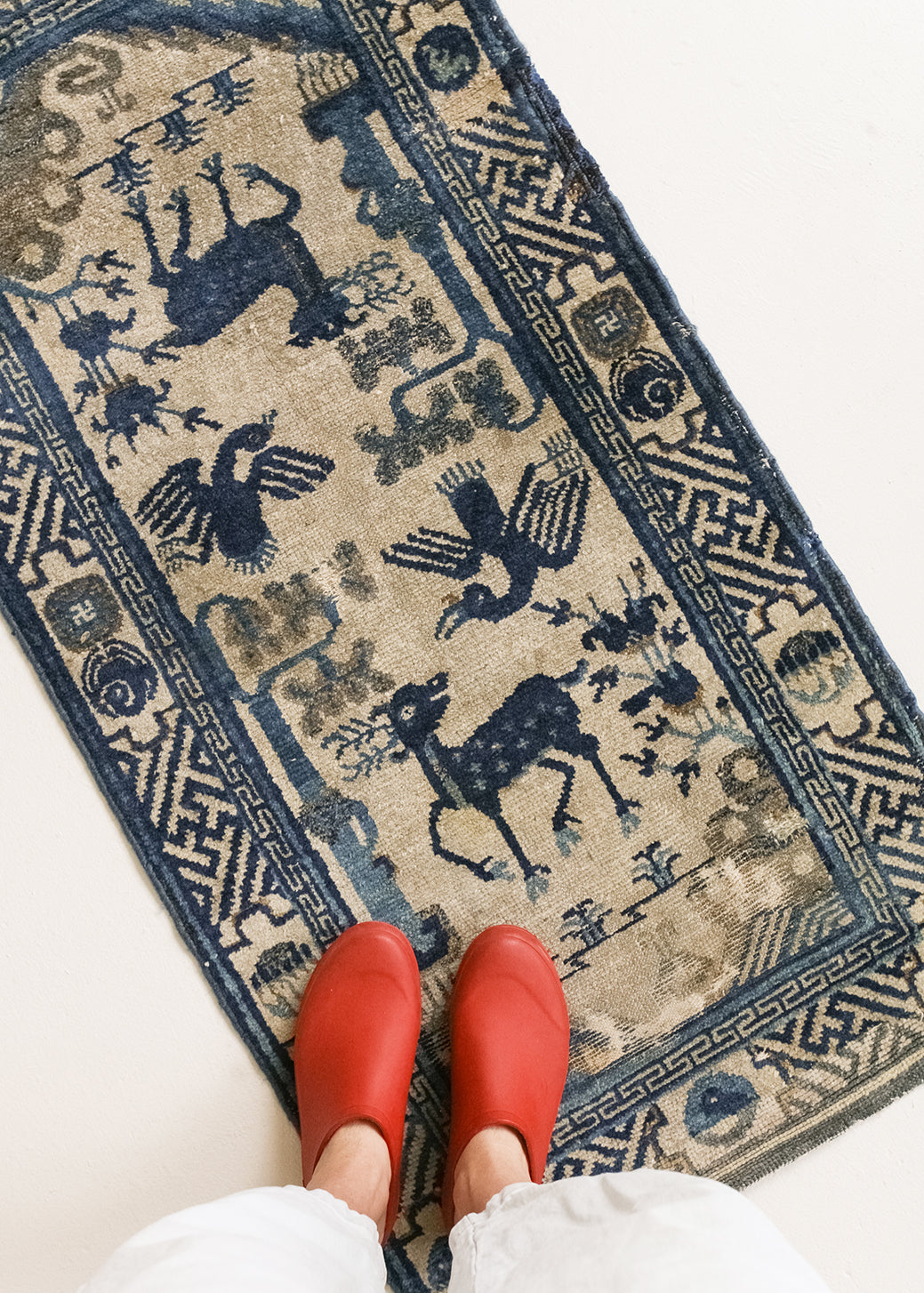 Inspired by the bold colors and art deco designs synonymous with East Asian rugs (think dragons and clouds, waves, and elaborate florals), we've curated our own collection of naturally worn, one-of-a-kind antiques that blend the FL aesthetic with the new (to us) designs.