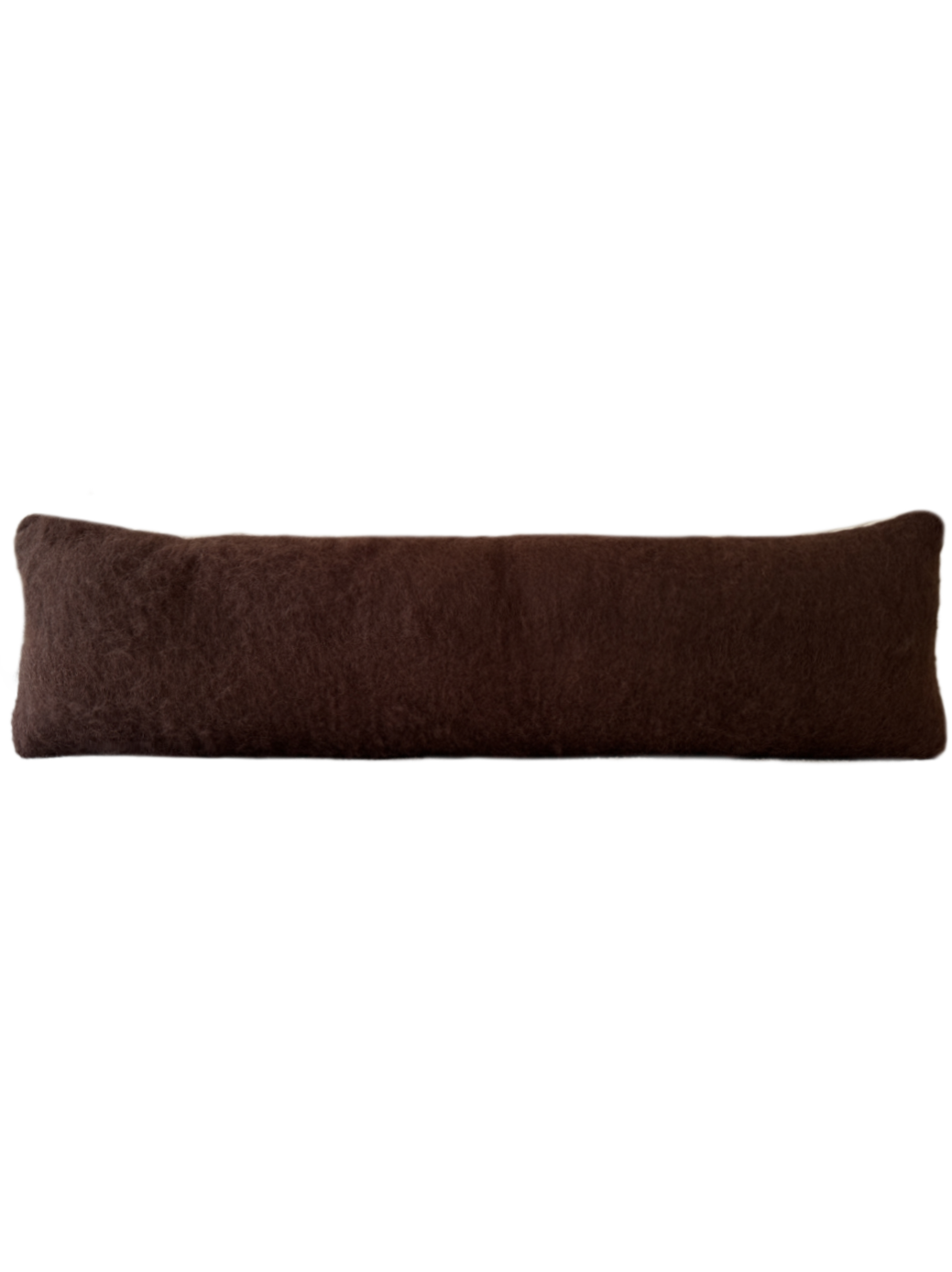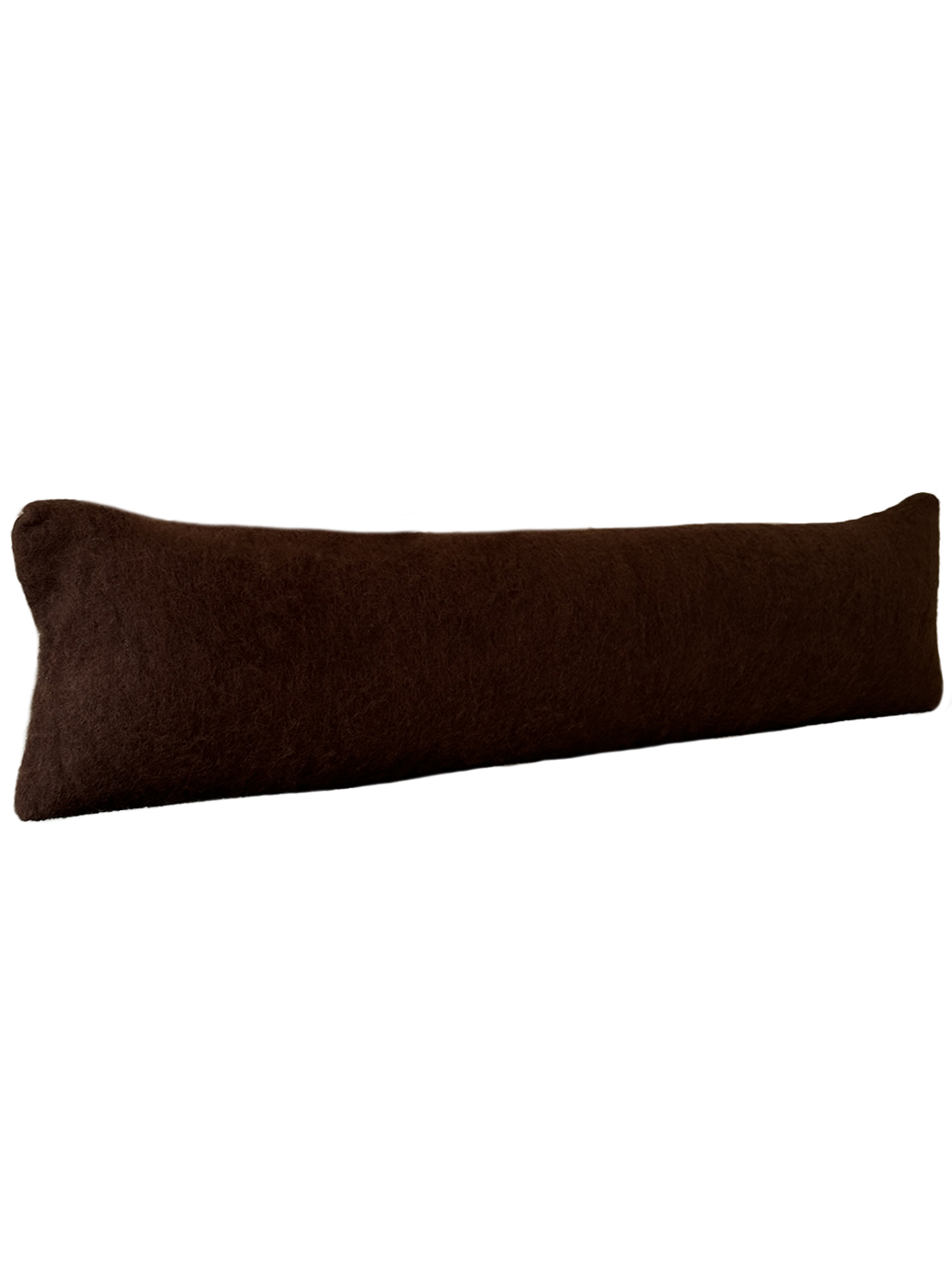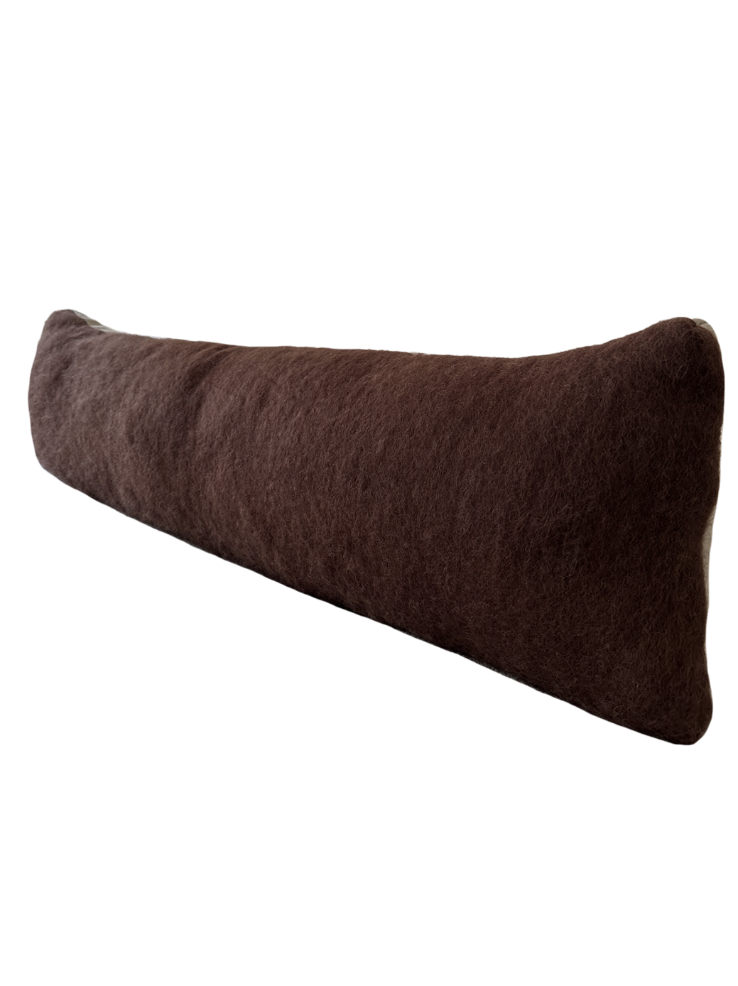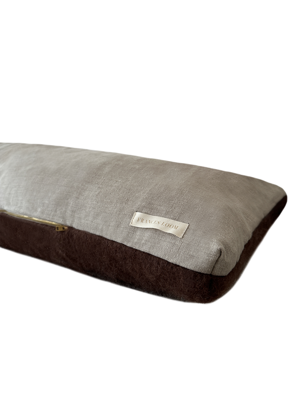 Size: 14" x 54" Composition: 67% wool, 33% polyamide. Backed in antique linen with an exposed brass zipper. Care: stains and spillages should be gently wiped with a damp cloth. If a more thorough wash is required, the pillow must be professionally dry cleaned.