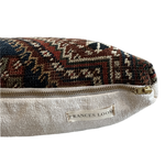 Entirely antique, this pillow pairs a handwoven rug fragment with antique French linen for a textured, timeless feel. It’s finished with a sturdy unlacquered brass zipper.