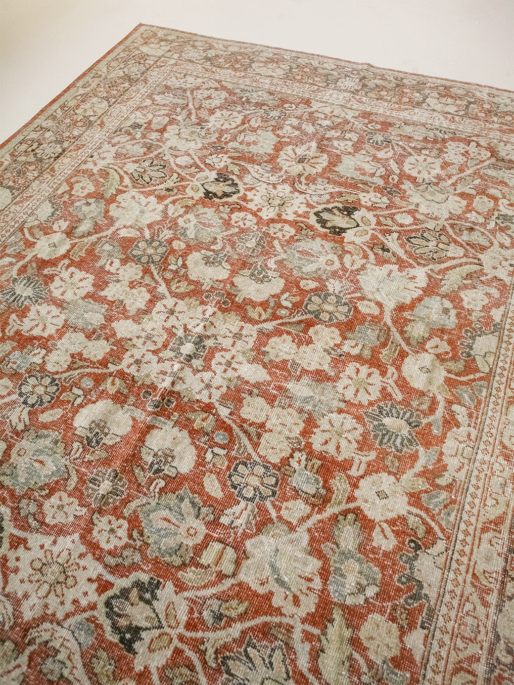 Many of our Mahal rugs are on the larger side, which is common for carpets from this region. You'll recognize them for the stylized floral elements and earthy, indigo and terracotta hues. The weavers in Mahallat typically used high-quality wool on a cotton warp and weft, for a sturdy long-lasting foundation. Their distinct style and durability is a testament to the skilled artisans who wove them.