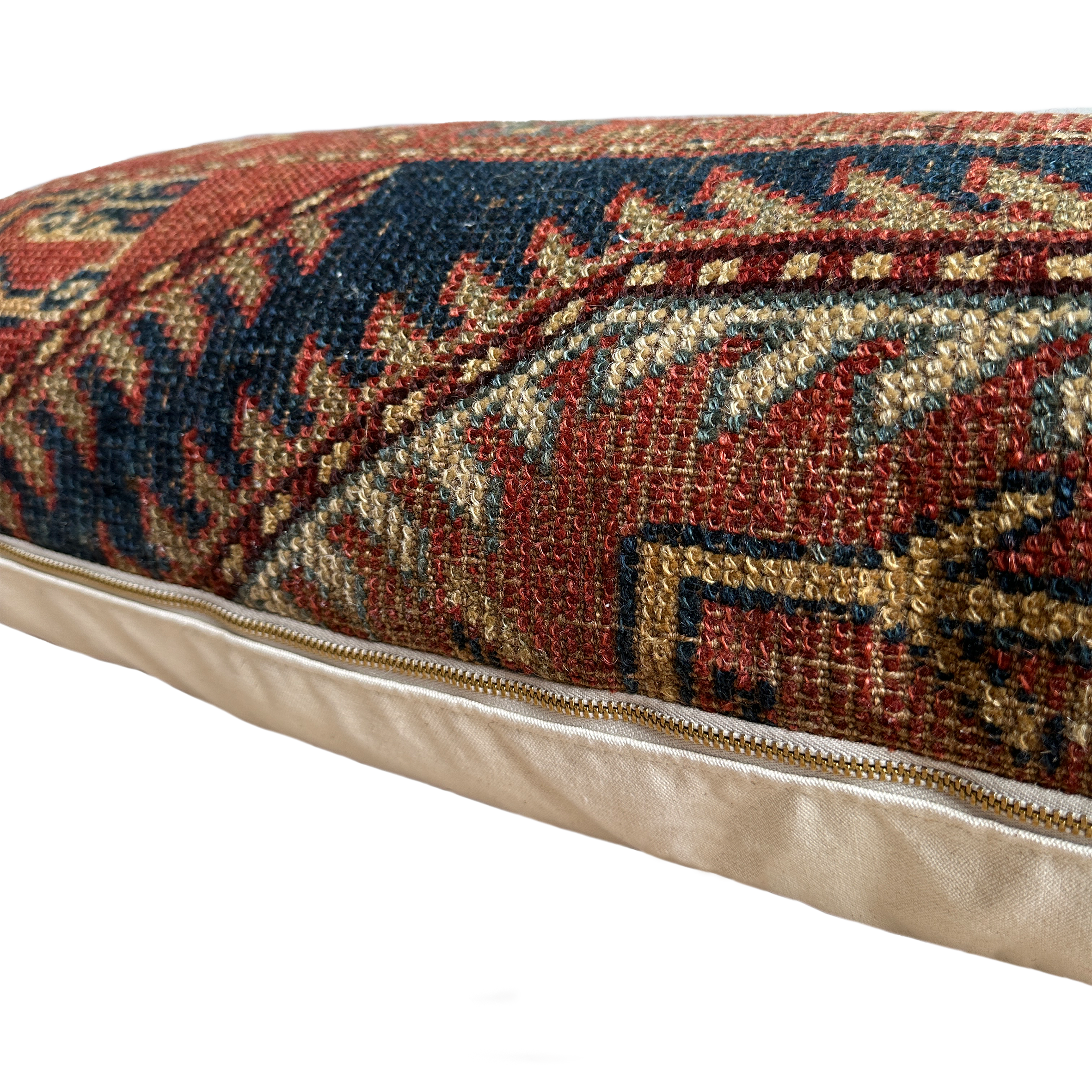 Composition: Antique rug and pure cotton canvas with an exposed brass zipper