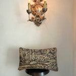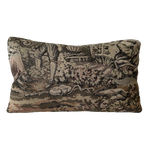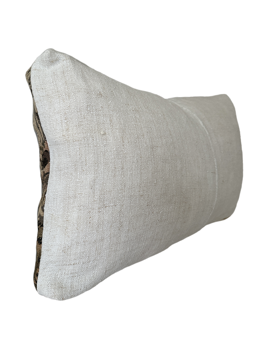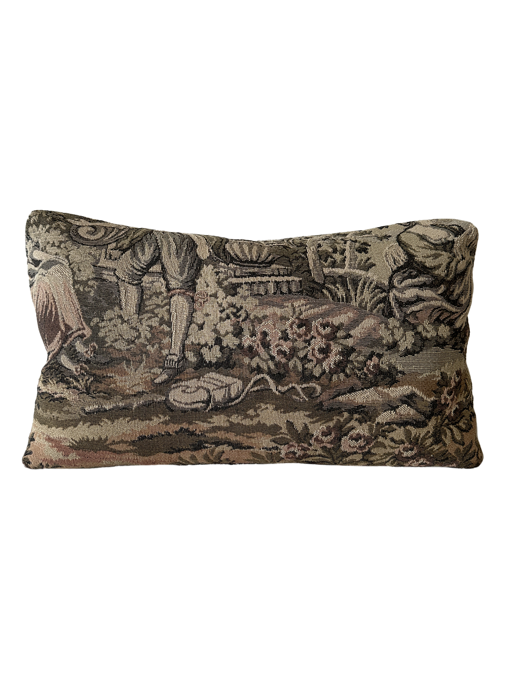 Origin: vintage tapestry and antique linen with an exposed brass zipper.