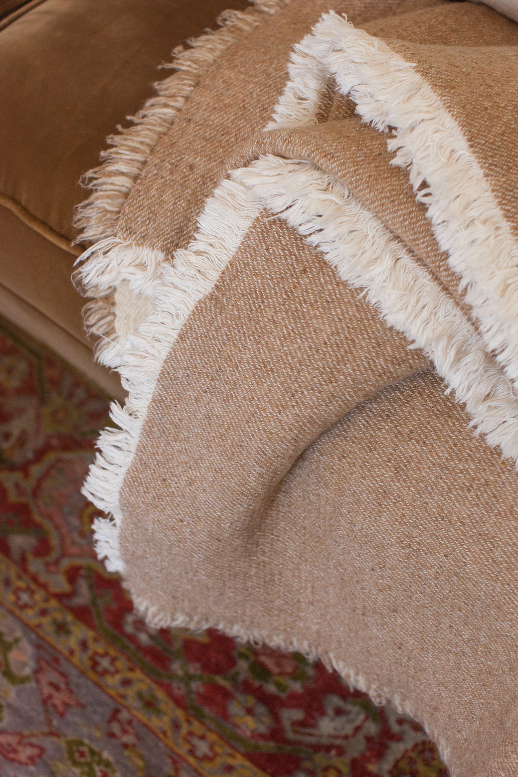 These double-faced virgin wool throws are the latest arrival in our Maison de Vacances collection. They're thick and seriously soft, in a beautiful blend of cream and taupe. The perfect cozy companion for your sofa this season!