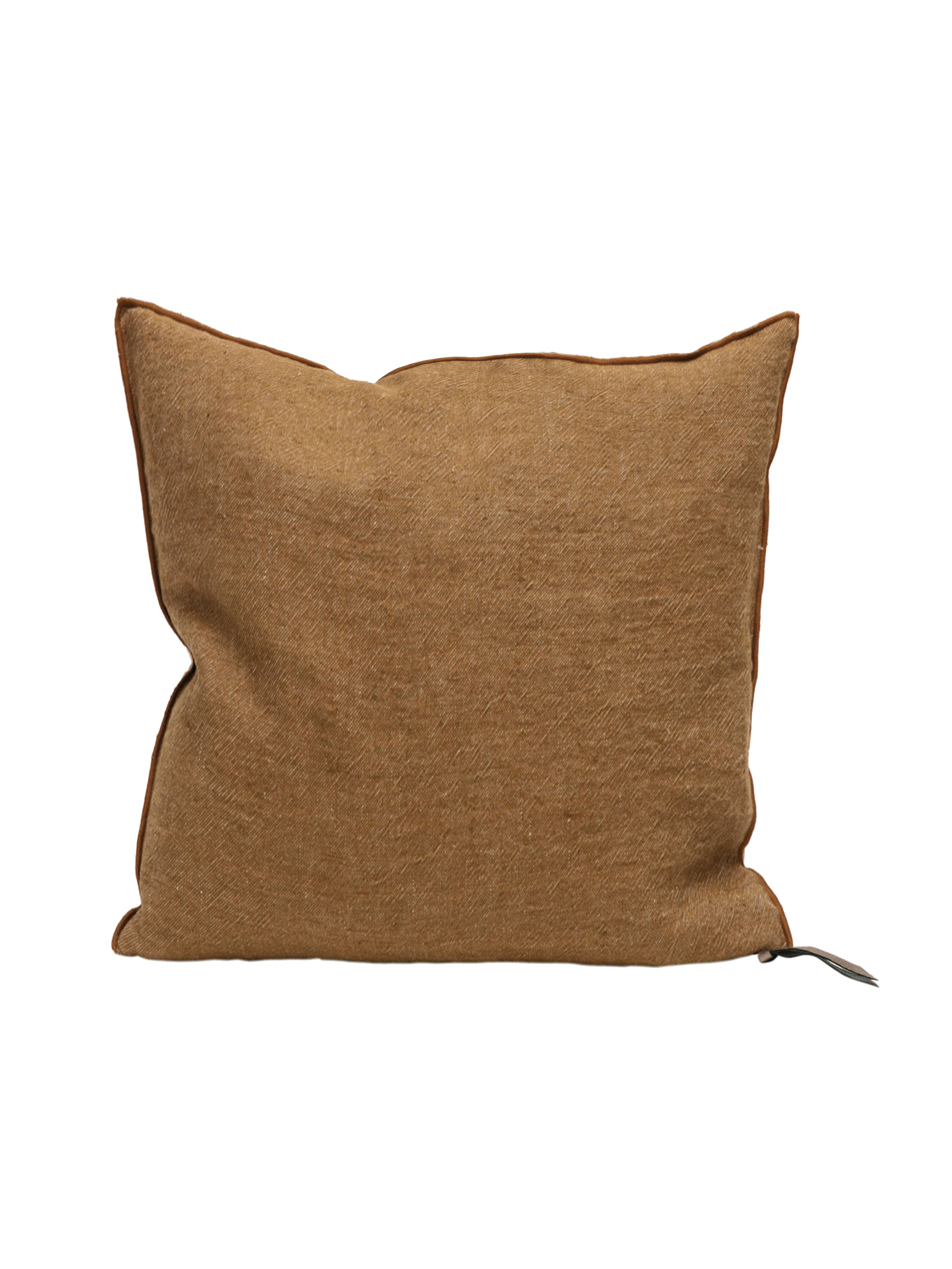 Made from pure washed linen, this Maison de Vacances pillow is a burnt yellow havane on one side and light brown on the reverse.