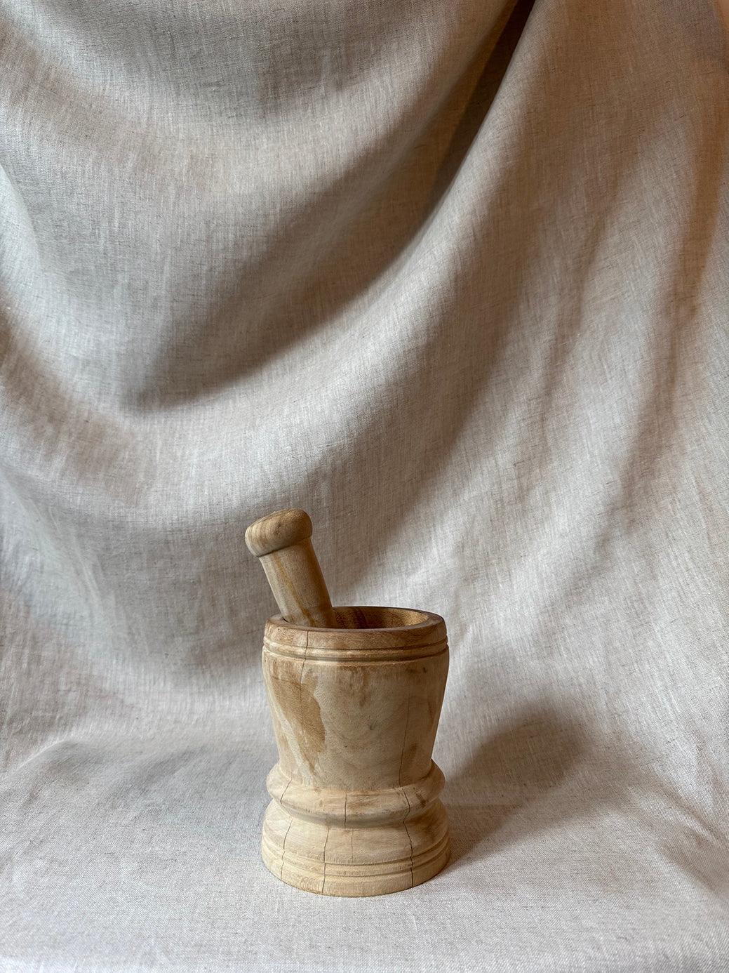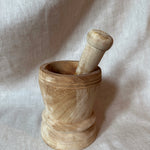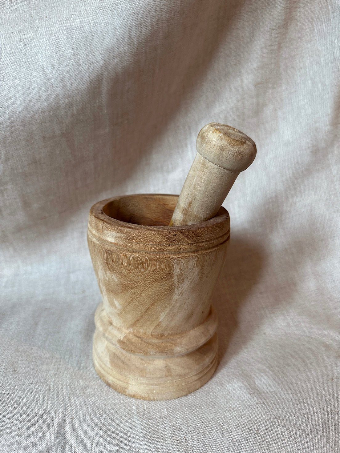 Size: pestle 6.5” x 1.75” wide, mortar 4.25” x 5.5” high
