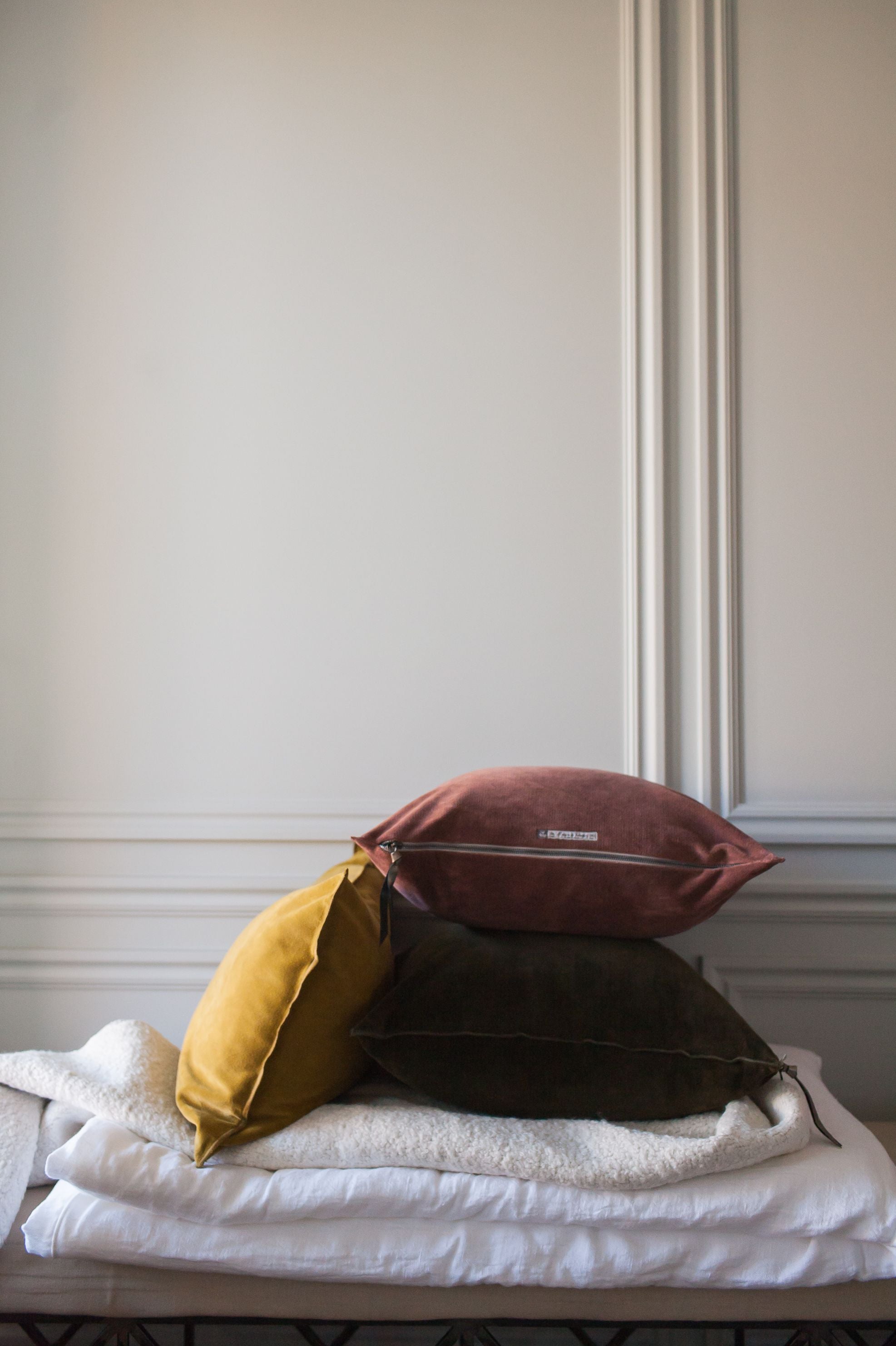 A firm favorite in the FL community is the Maison de Vacances duvet cocoon. Made from pure washed linen, this padded throw is as soft and cozy as they come. This colorway is a natural ecru on one side and white on the reverse.