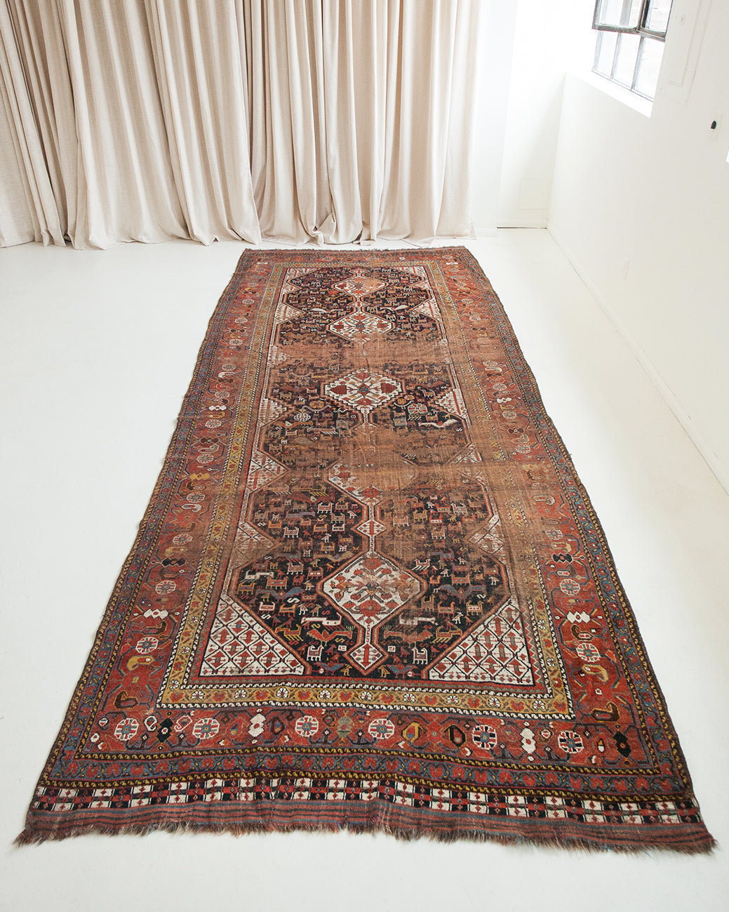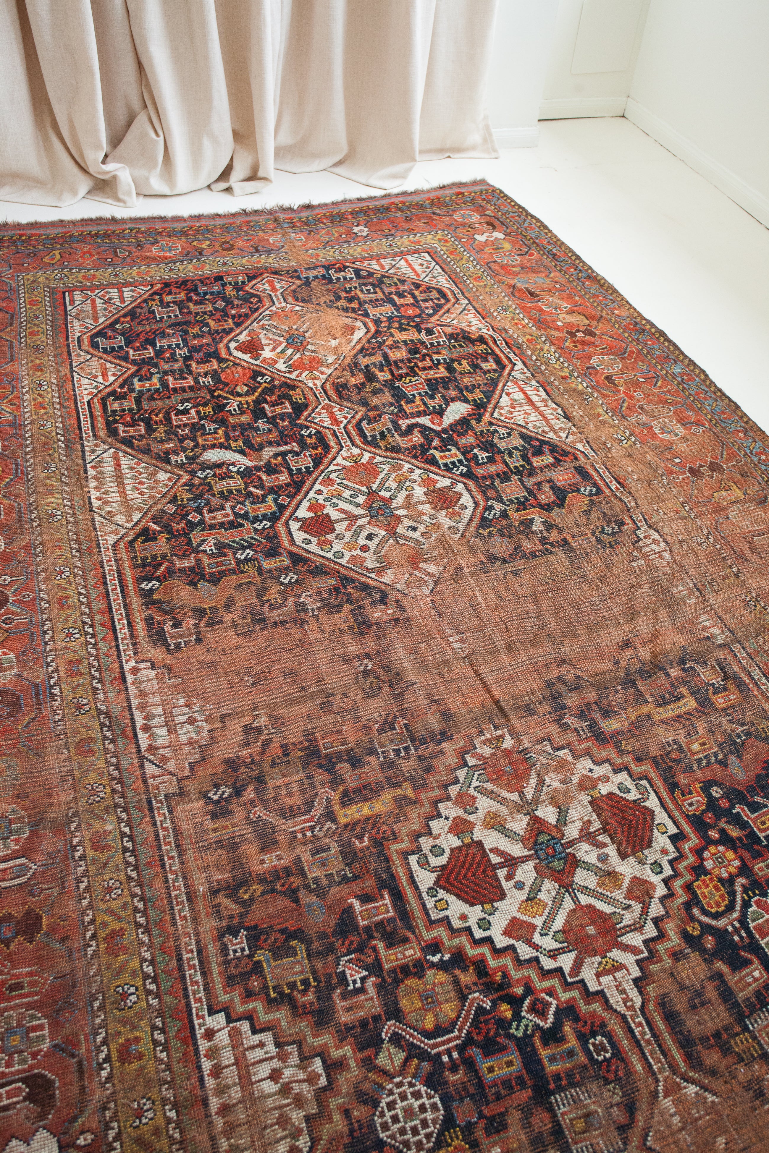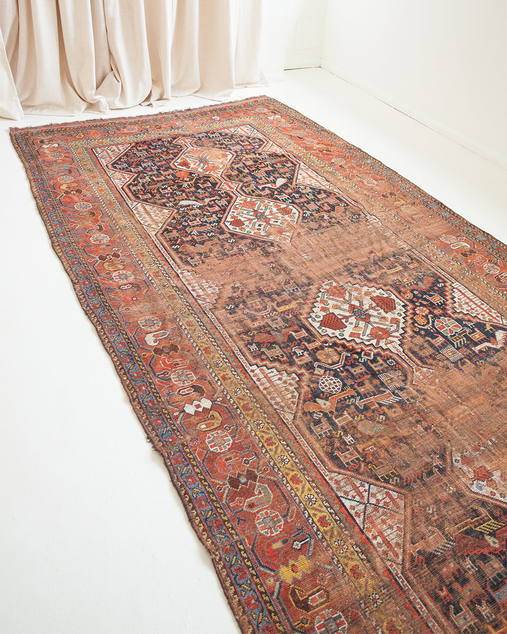Because of the nature of these antique handmade rugs, irregularities are likely to exist and are not considered defects.