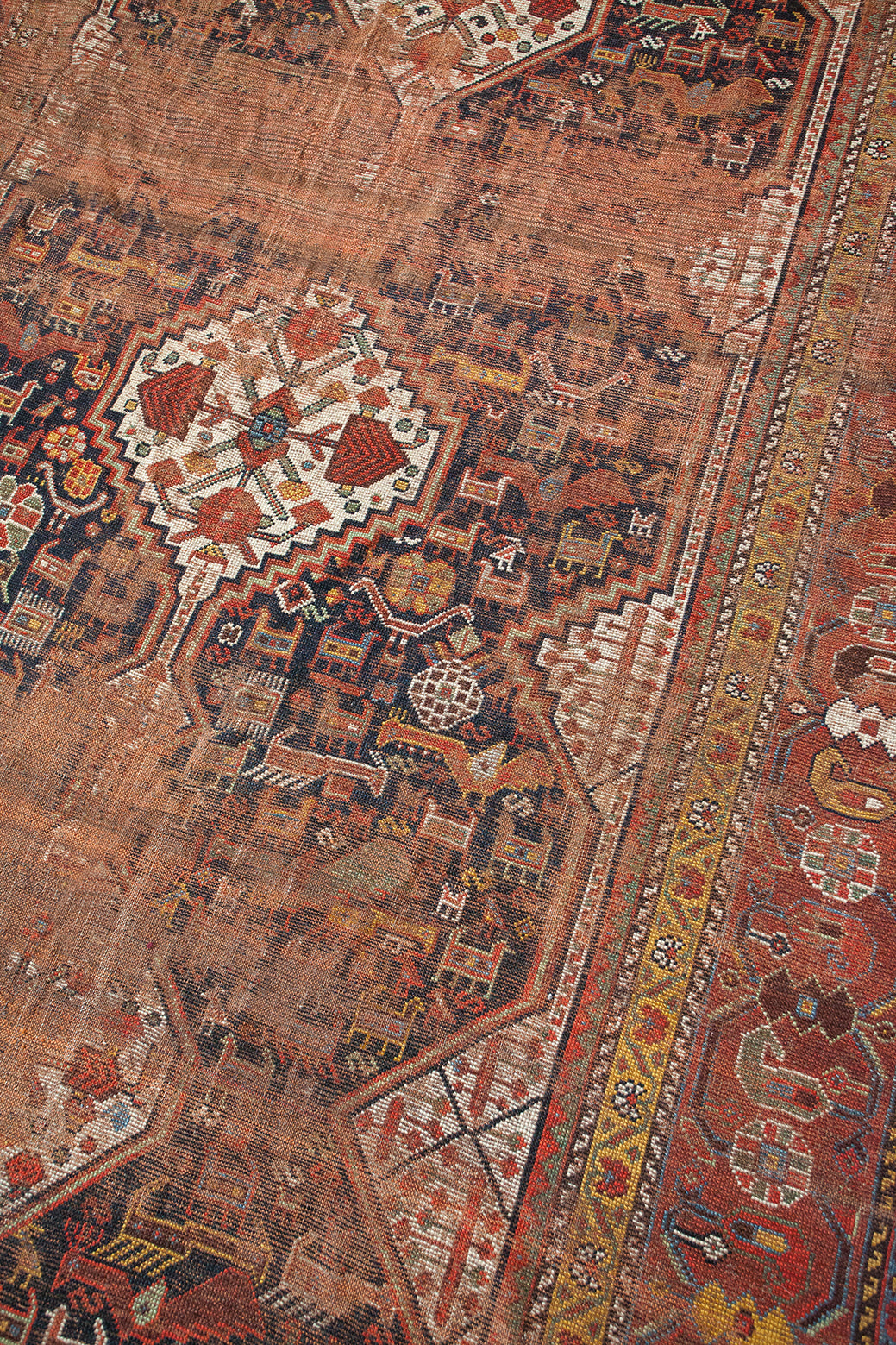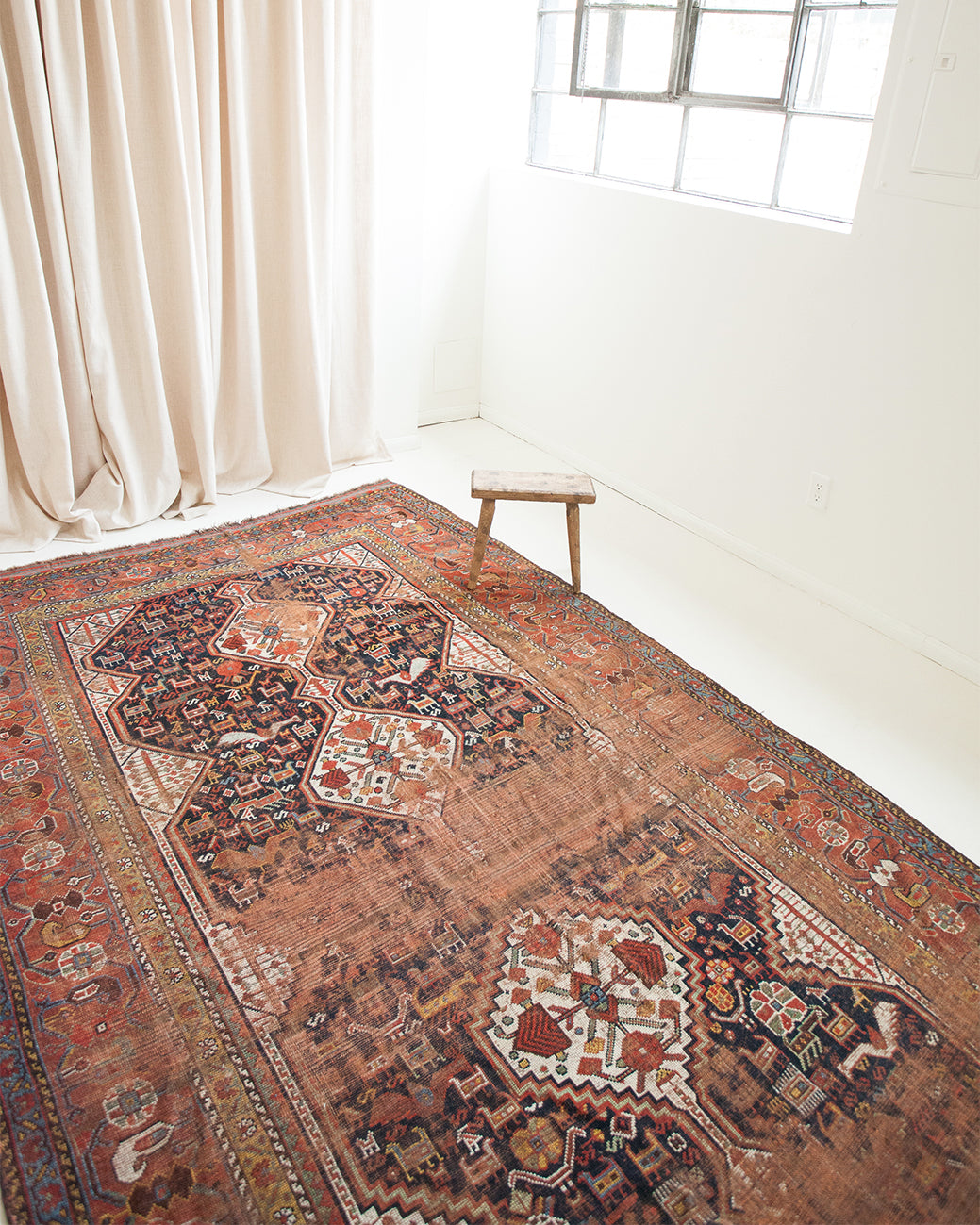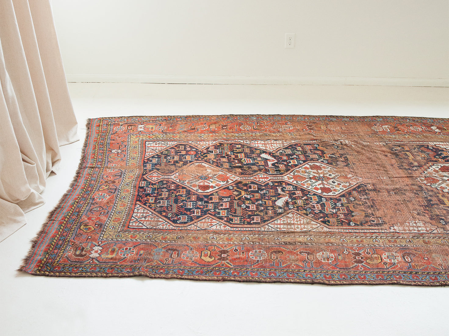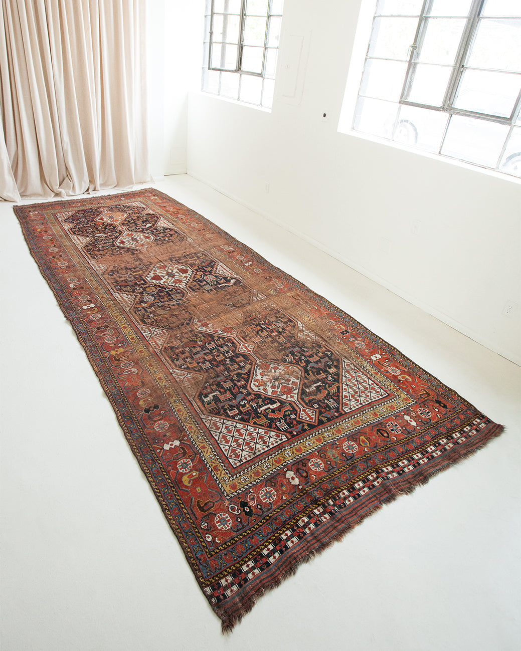 Because of the nature of these antique handmade rugs, irregularities are likely to exist and are not considered defects.