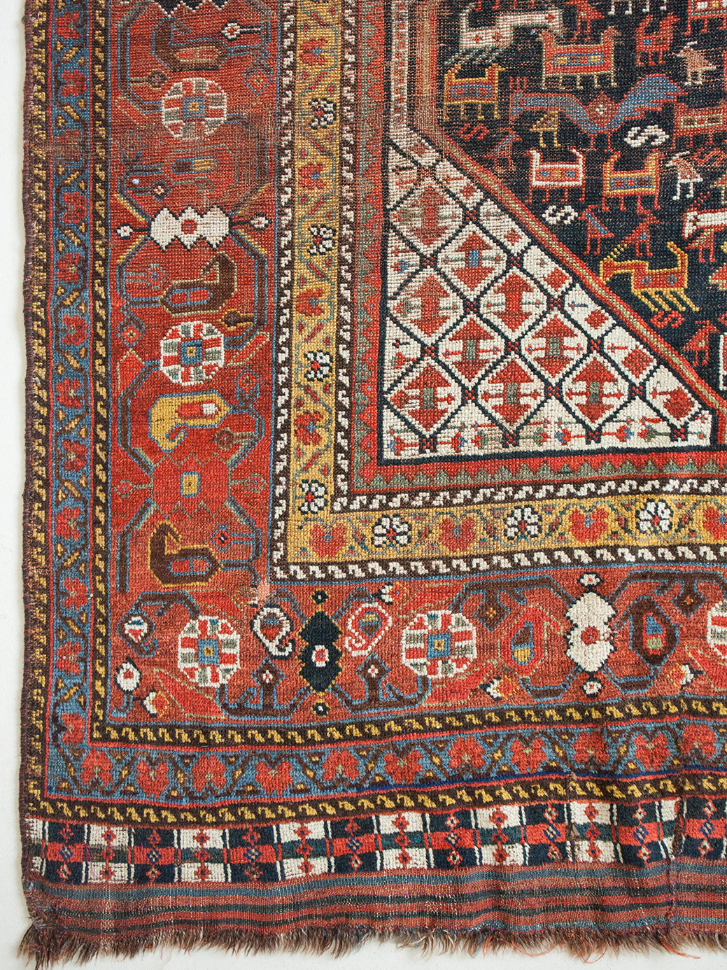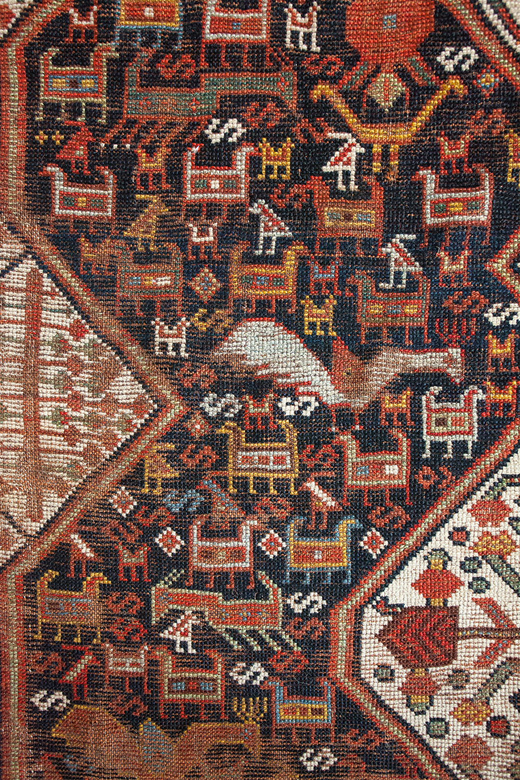 The history of rug weaving in Shiraz can be traced back to the 16th century, and their techniques and knowledge have been passed down from generation to generation. Stylistically, the rugs are renowned for their tribal designs and rustic charm, reflecting the rich nomadic heritage of the region with the inclusion of animals, plants and stick figures. The knot density of Shiraz rugs is usually lower than those from other regions, giving them a more relaxed feel that still stands the test of time.