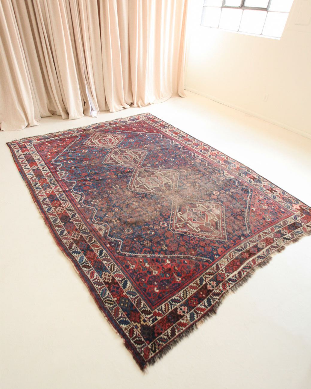 Because of the nature of these antique handmade rugs, irregularities are likely to exist and are not considered defects.
