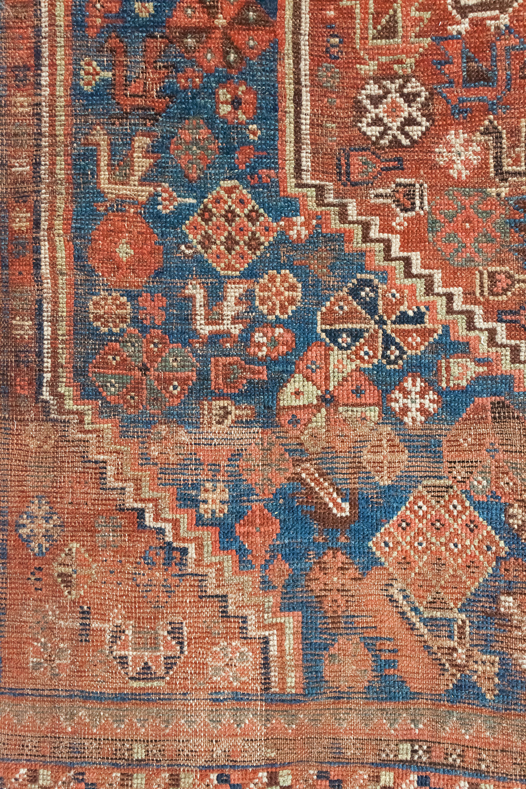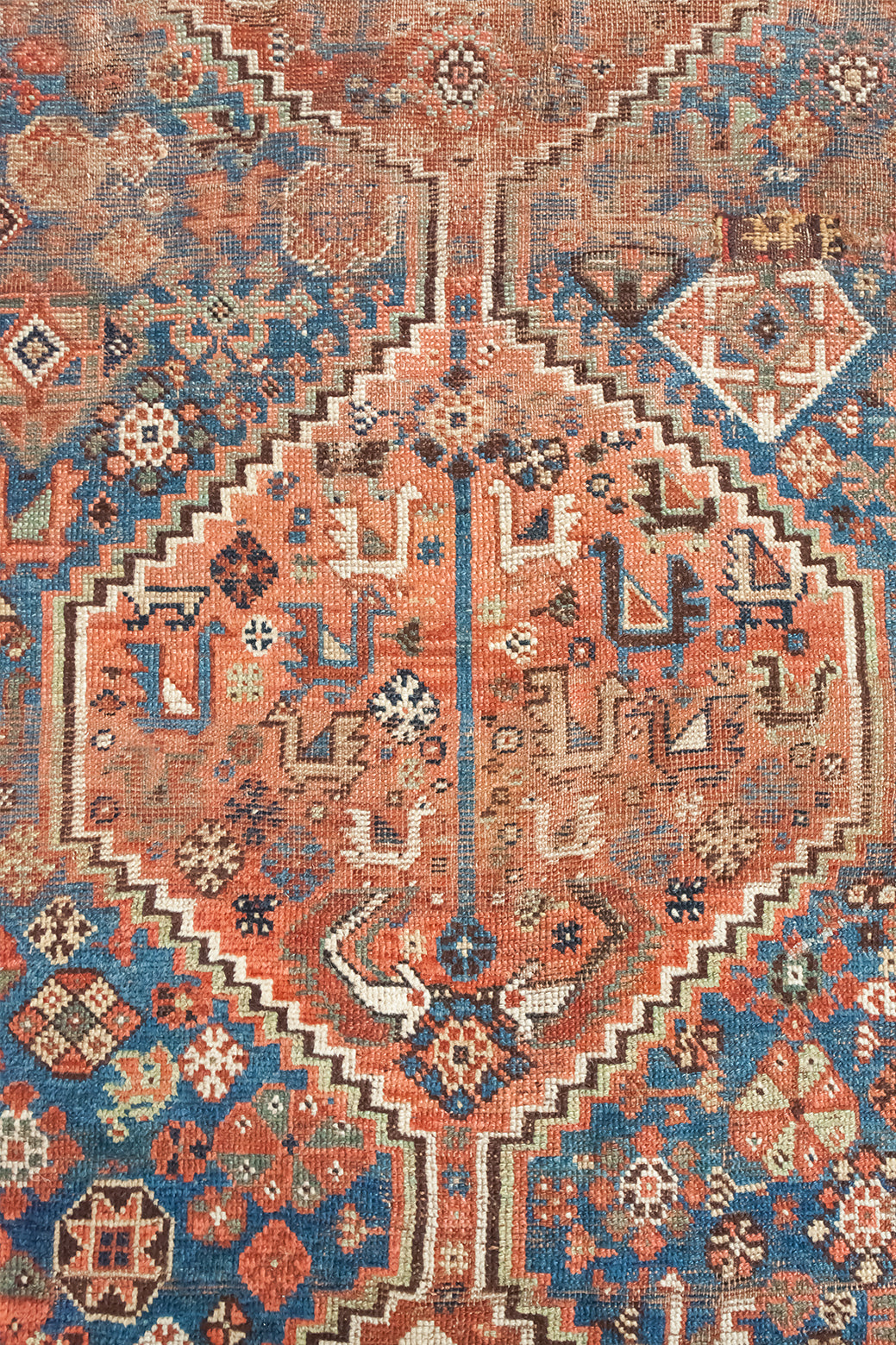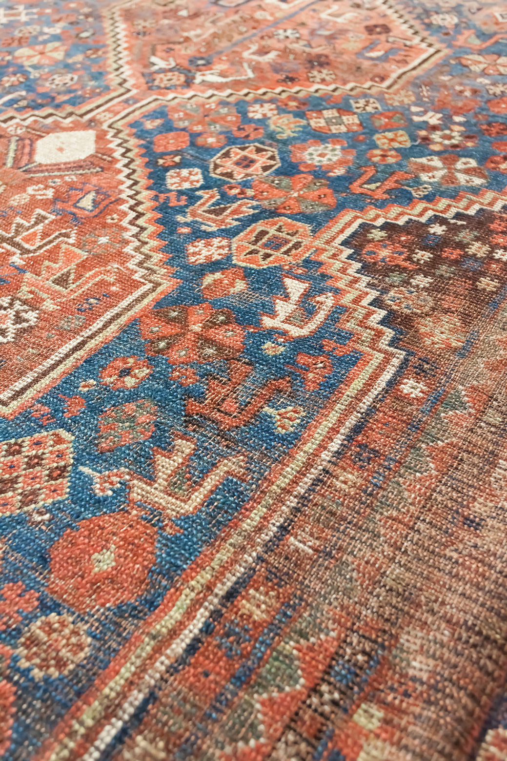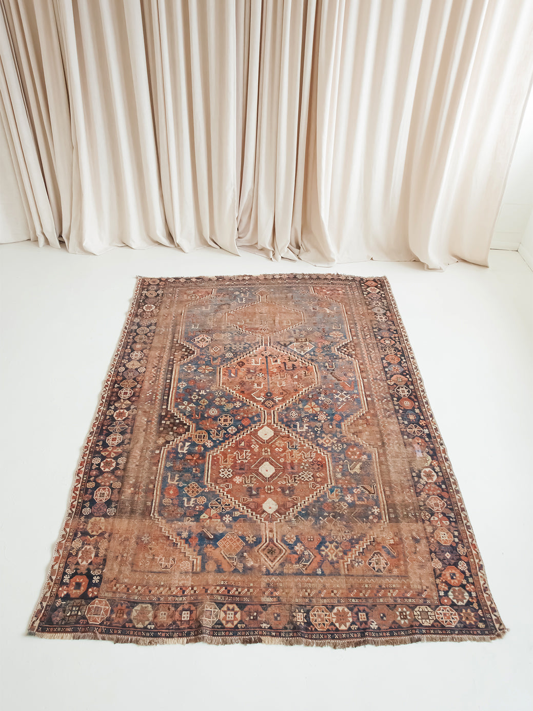 The history of rug weaving in Shiraz can be traced back to the 16th century, and their techniques and knowledge have been passed down from generation to generation. Stylistically, the rugs are renowned for their tribal designs and rustic charm, reflecting the rich nomadic heritage of the region with the inclusion of animals, plants and stick figures. The knot density of Shiraz rugs is usually lower than those from other regions, giving them a more relaxed feel that still stands the test of time.