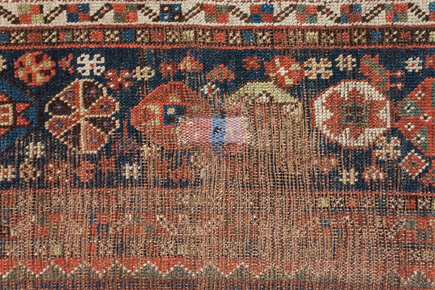 Because of the nature of these antique handmade rugs, irregularities are likely to exist and are not considered defects.