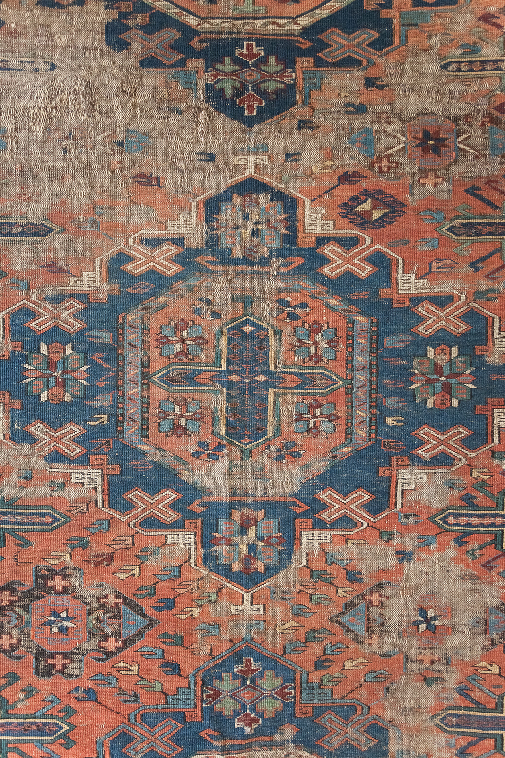 Because of the nature of these antique handmade rugs, irregularities are likely to exist and are not considered defects.