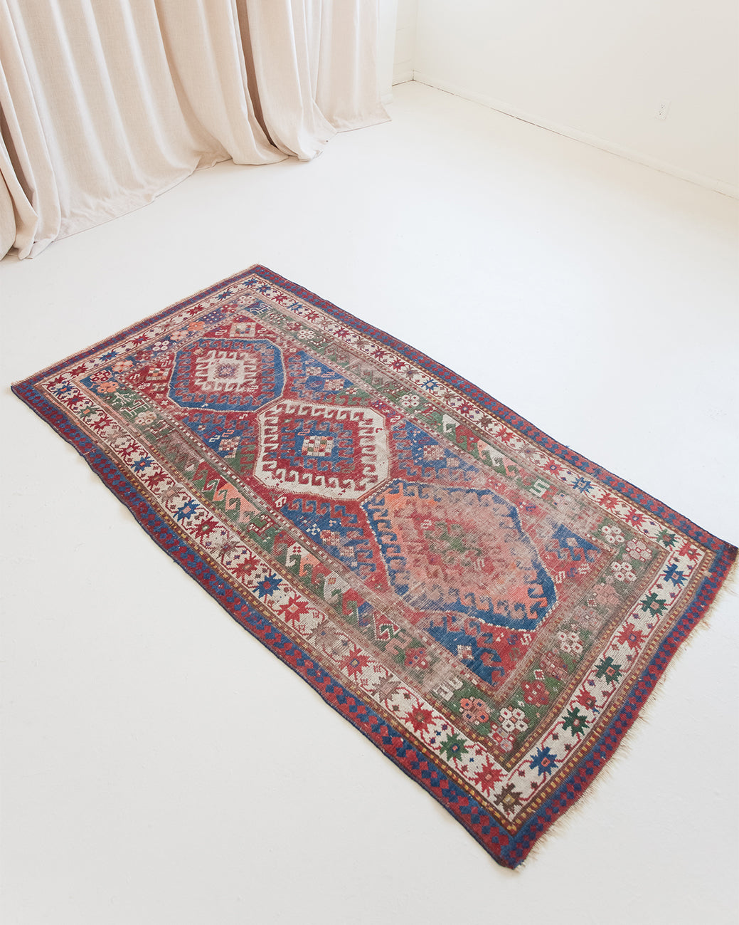 Kazak rugs stem from the Caucasus mountains which span modern-day Armenia, Azerbaijan and Georgia. The term refers to a wide range of rugs produced by weavers living in the regions' alpine villages, so stylistically there's quite a lot of variation. As a melting pot of culture, you'll notice a blend of Persian motifs, geometric Turkish patterns and Russian-inspired floral designs. Rug-making techniques were honed and passed down here, making Kazak rugs some of the most hard-wearing and ideal for high traffic areas.