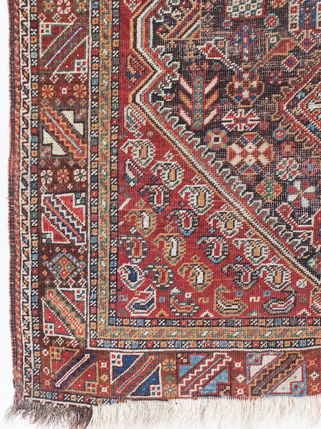 The Qashqai tribe would typically reside further south in the Zagros mountains. Each winter they would follow their flocks from the summer pastures in the highlands north of Shiraz, to the warmer winter grazing lands almost 500km to the south. Their goats provide milk, cheese and meat, while the sheep (shorn only once a year) produce tough, long-fibred wool that's ideal for rug weaving.