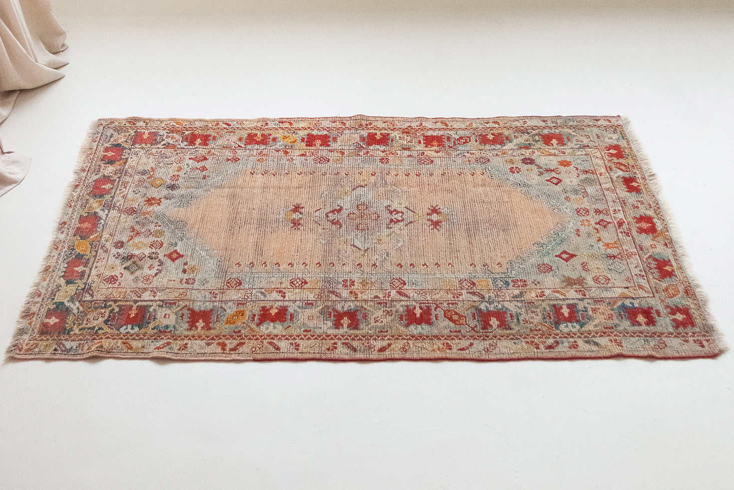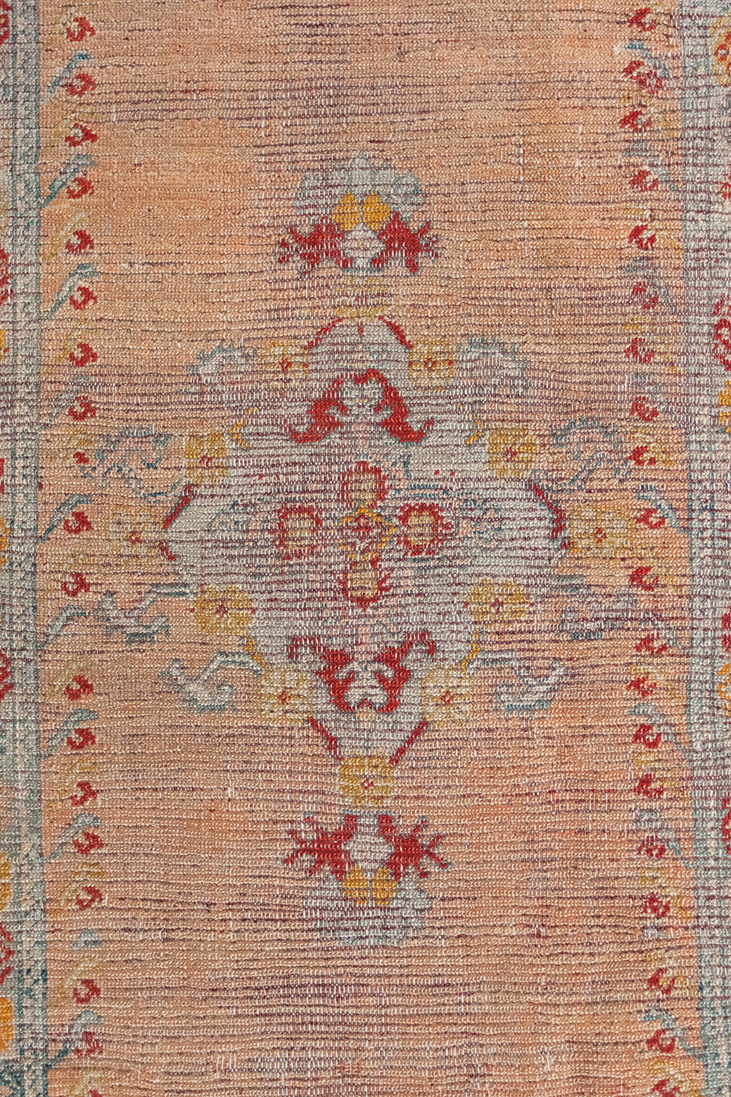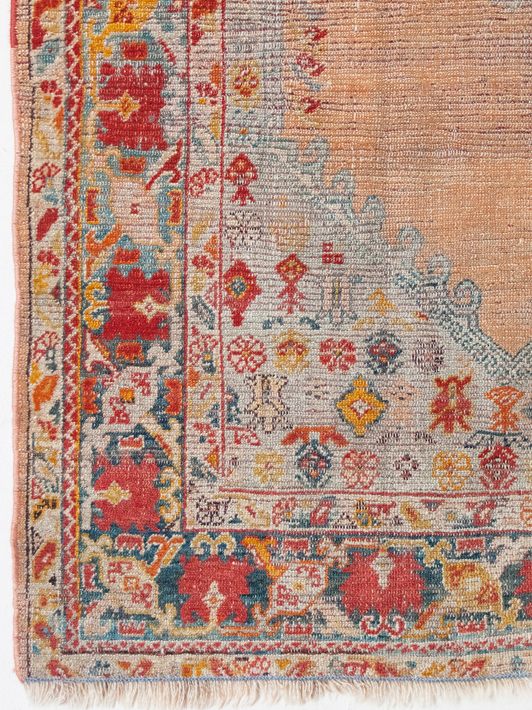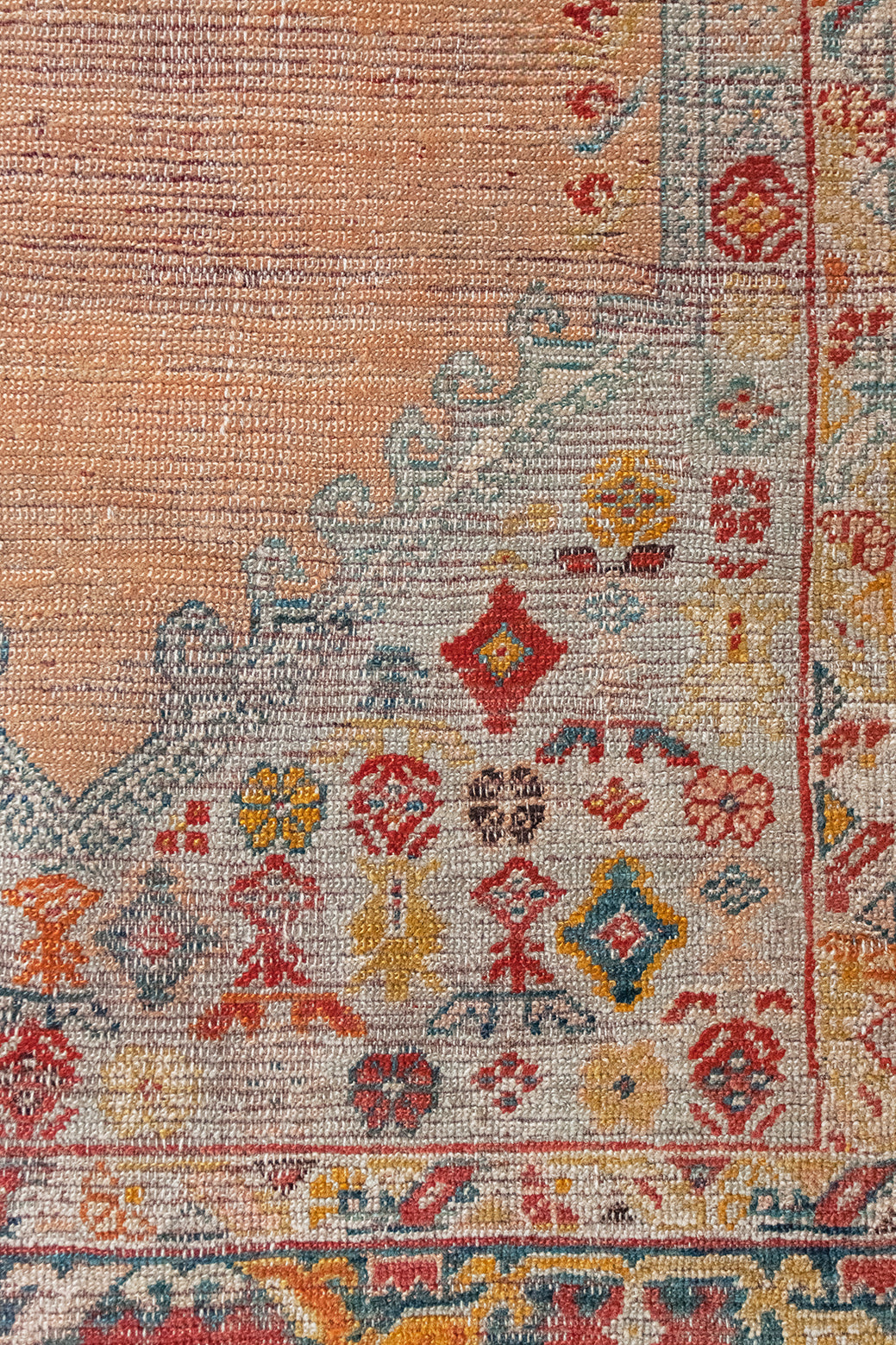 The Turkish (formerly Anatolian) town of Oushak is the birthplace of many of our favorite rugs. Despite being hundreds of miles from Persia, they still have some visual similarities like central medallions and angular, large-scale floral motifs. However, Oushaks are usually more spacious, allowing the patterns to stand out against the solid field. They tend to have a silky, luminous appearance and softer, muted palettes, created with natural dyes like cinnamon and saffron.