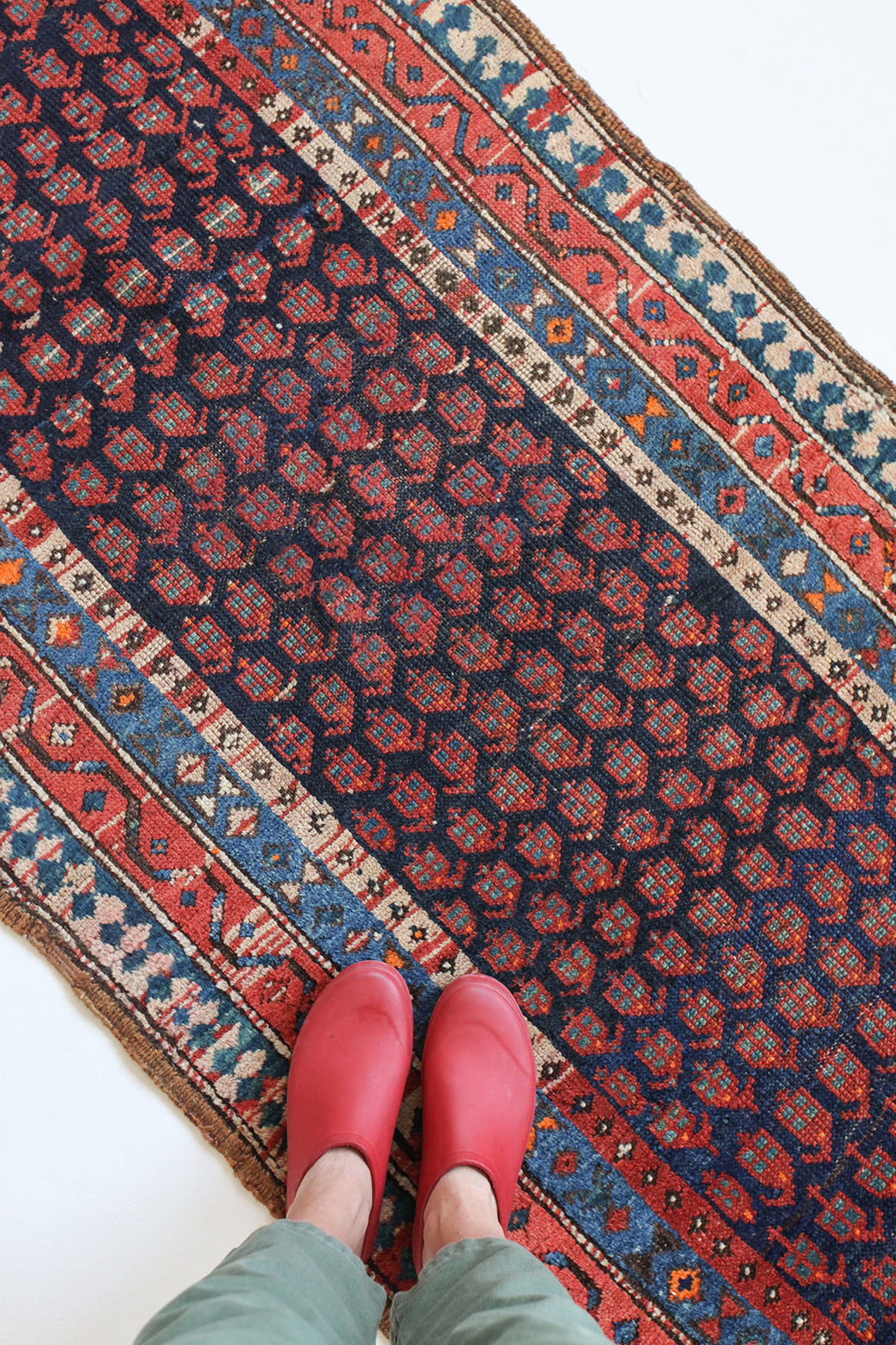 Because of the nature of these antique handmade rugs, irregularities are likely to exist and are not considered defects.