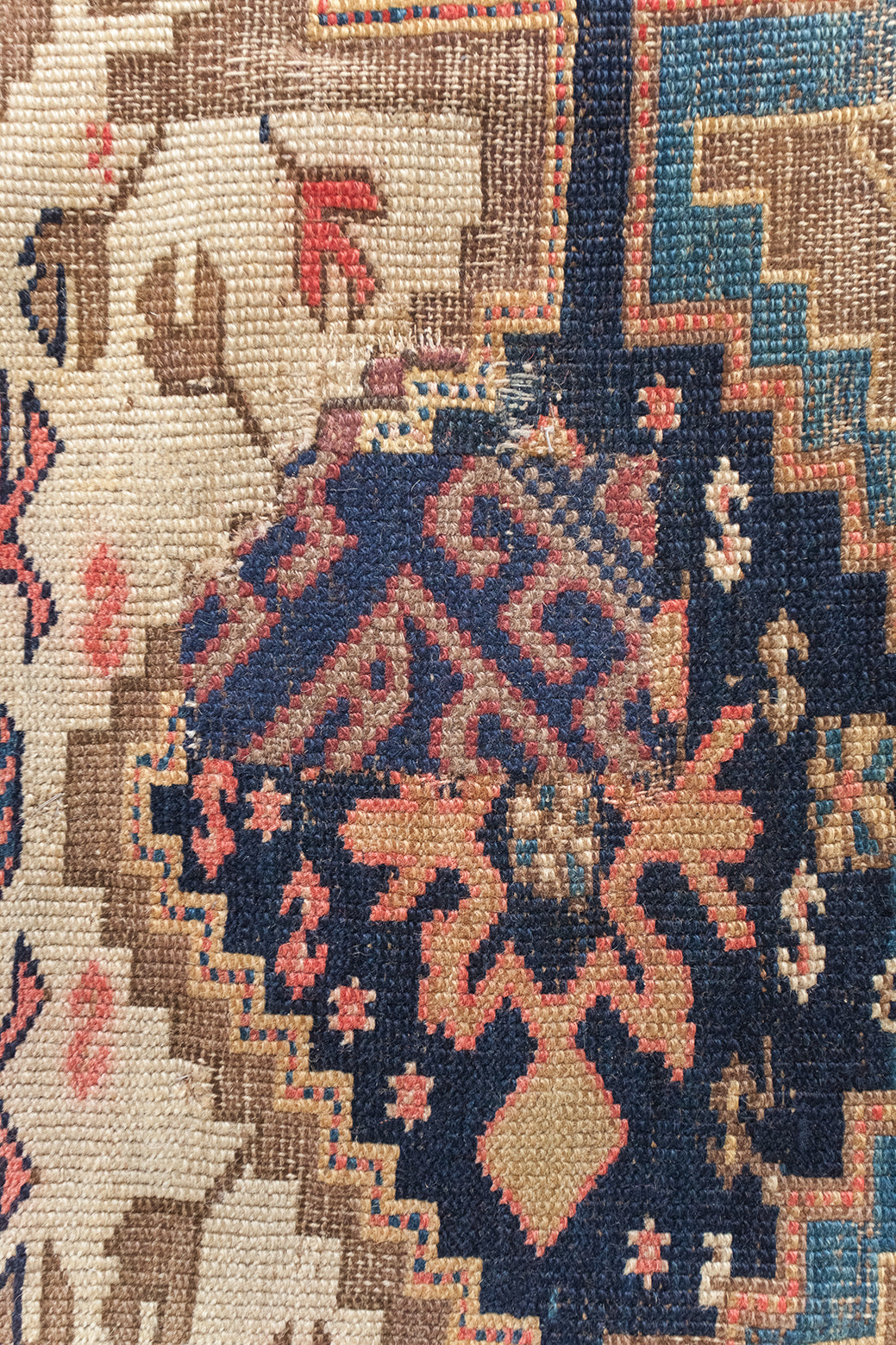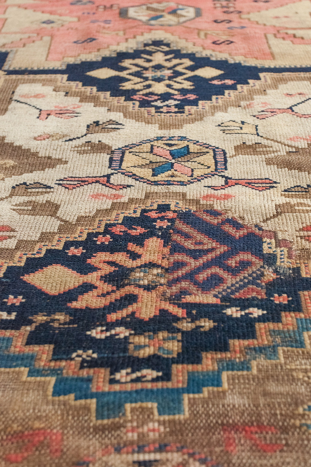 Because of the nature of these antique handmade rugs, irregularities are likely to exist and are not considered defects.