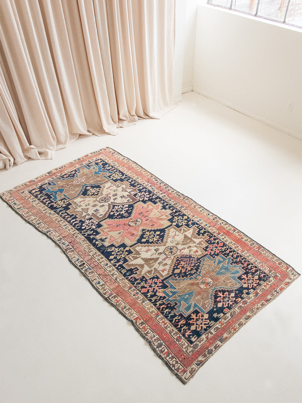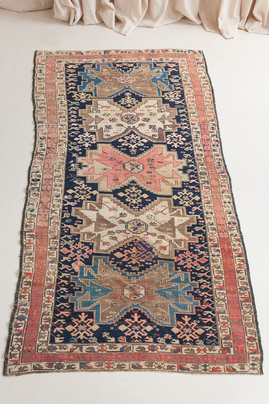 Kazak rugs stem from the Caucasus mountains, which span modern-day Armenia, Azerbaijan, and Georgia. The term refers to a wide range of rugs produced by weavers living in the regions' alpine villages, so stylistically there's quite a lot of variation. As a melting pot of culture, you'll notice a blend of Persian motifs, geometric Turkish patterns, and Russian-inspired floral designs. Rug-making techniques were honed and passed down here, making Kazak rugs some of the most hard-wearing and ideal for high-traffic areas.