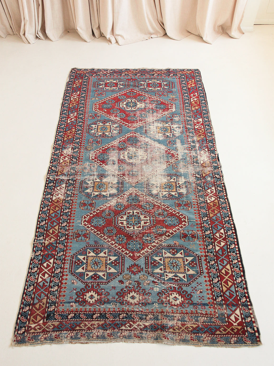 The Shirwan region is on the western coast of the Caspian sea, and has long been a creative hub for rug weaving. The name is Persian for cypress tree, a symbol representing eternal youth and life beyond death. You'll often spot the tree of life in their designs, along with tribal motifs and stylised florals, all in natural, vibrant dyes derived from plants and insects.