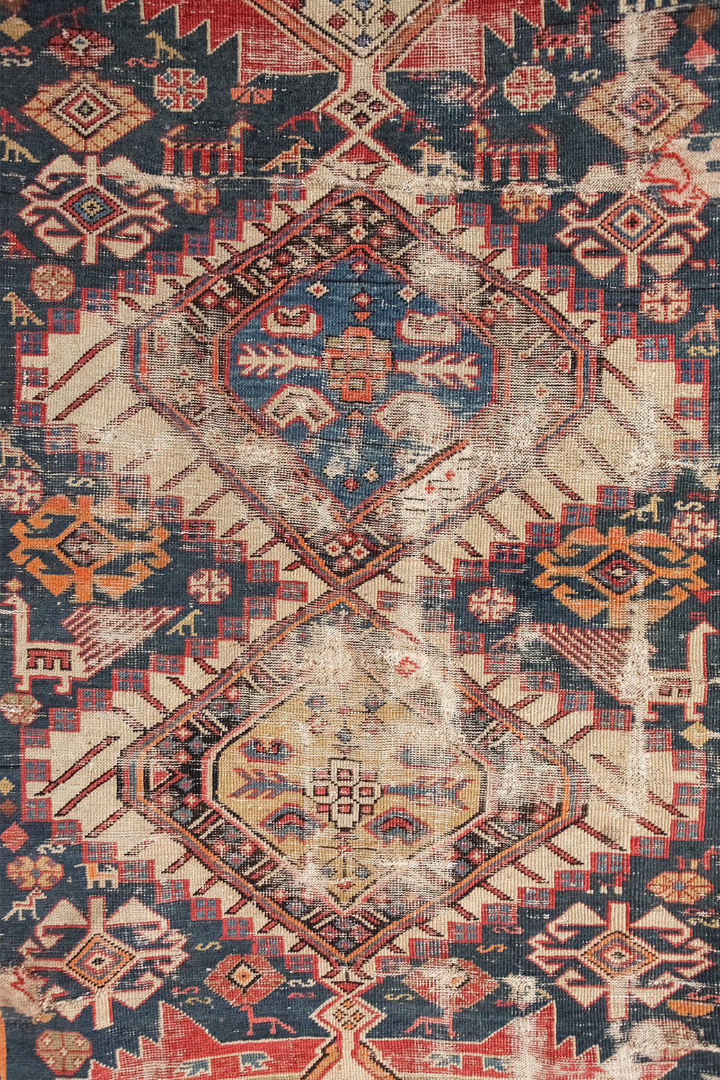 Because of the nature of these antique handmade rugs, irregularities are likely to exist and are not considered defects.