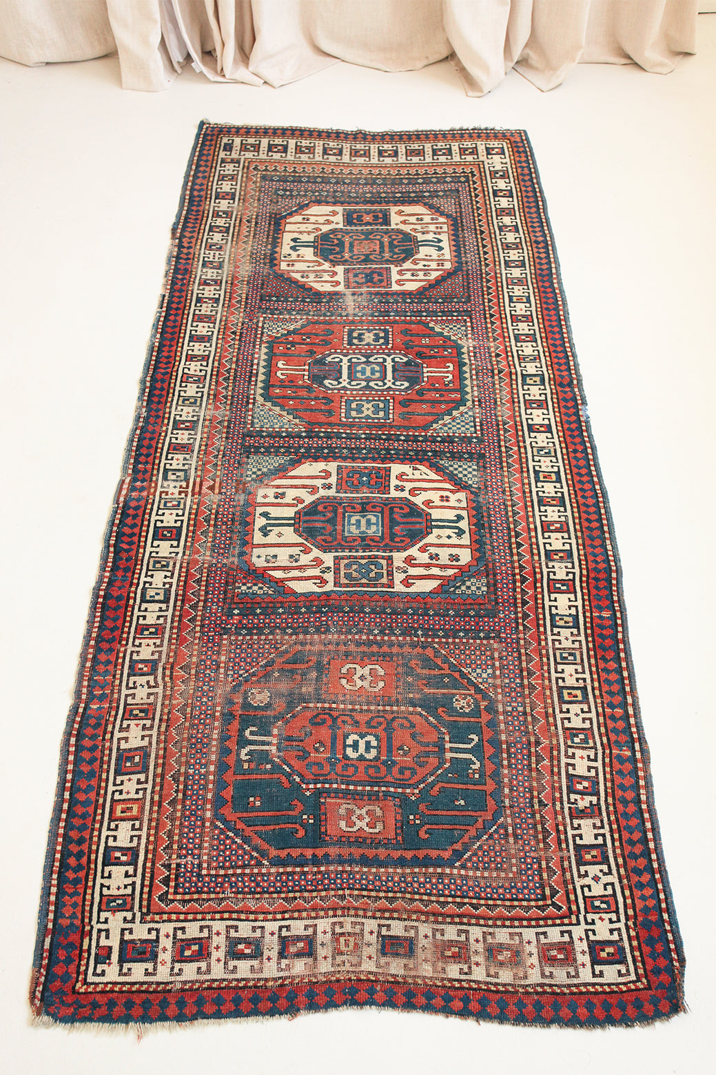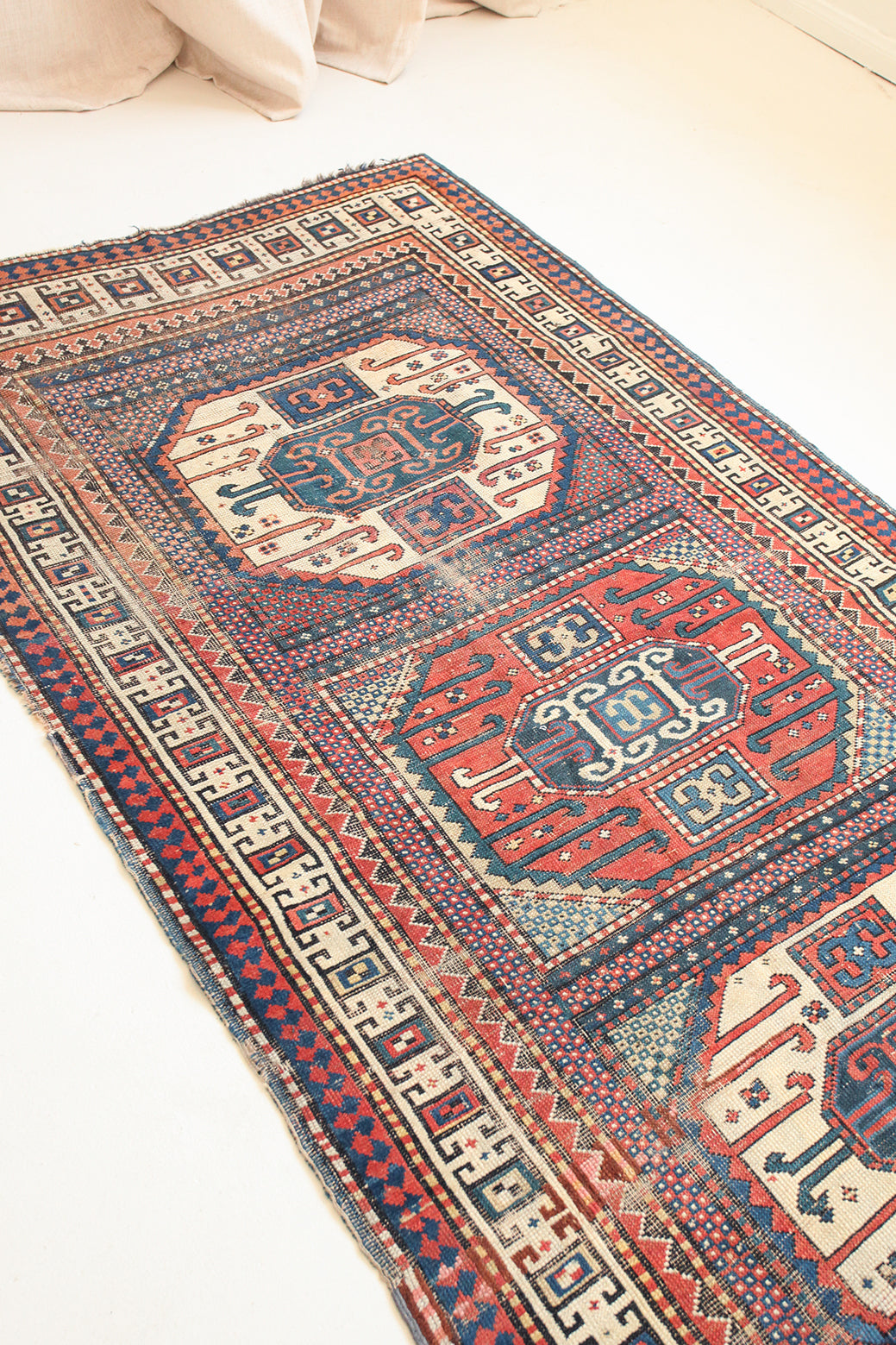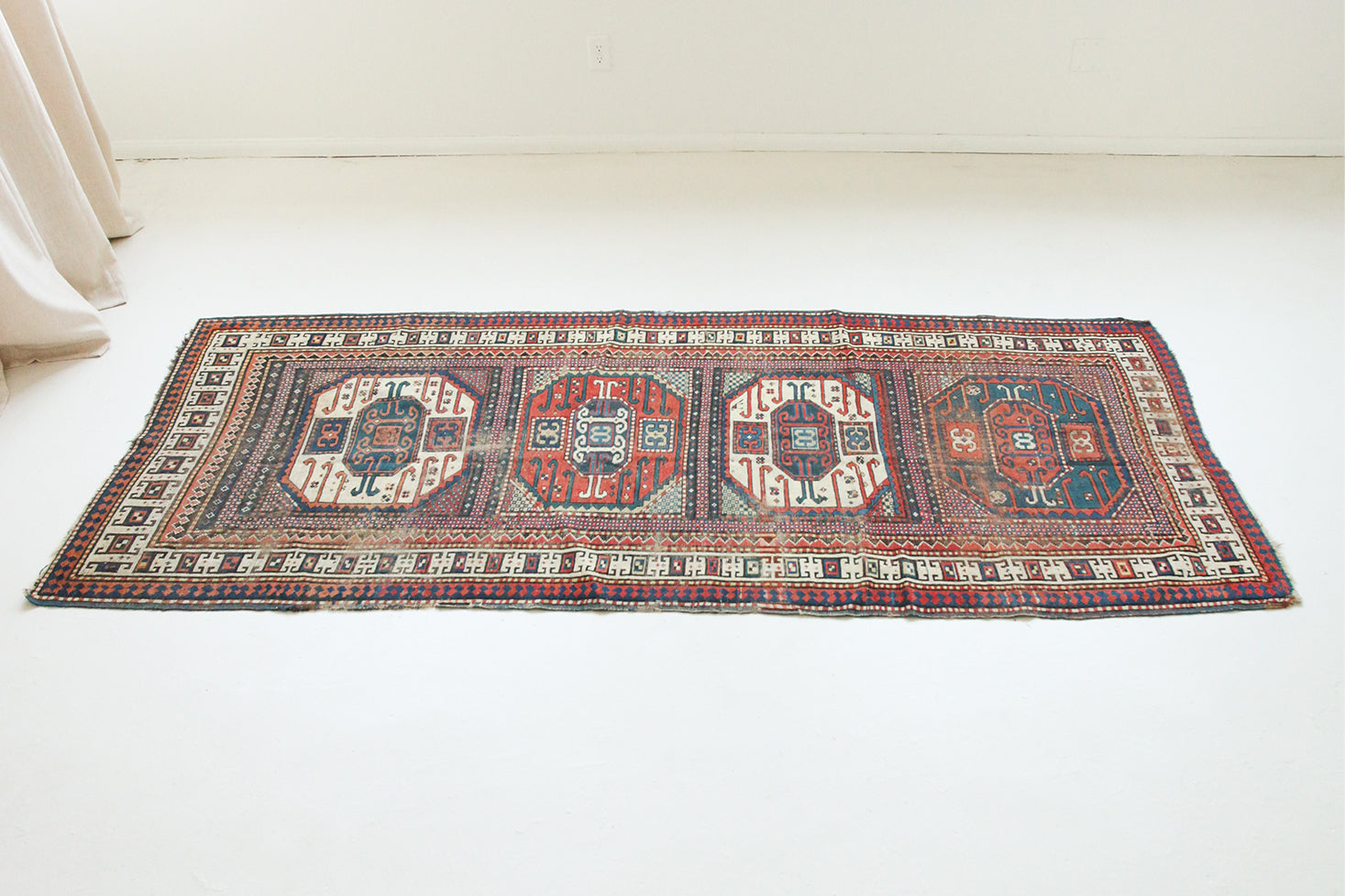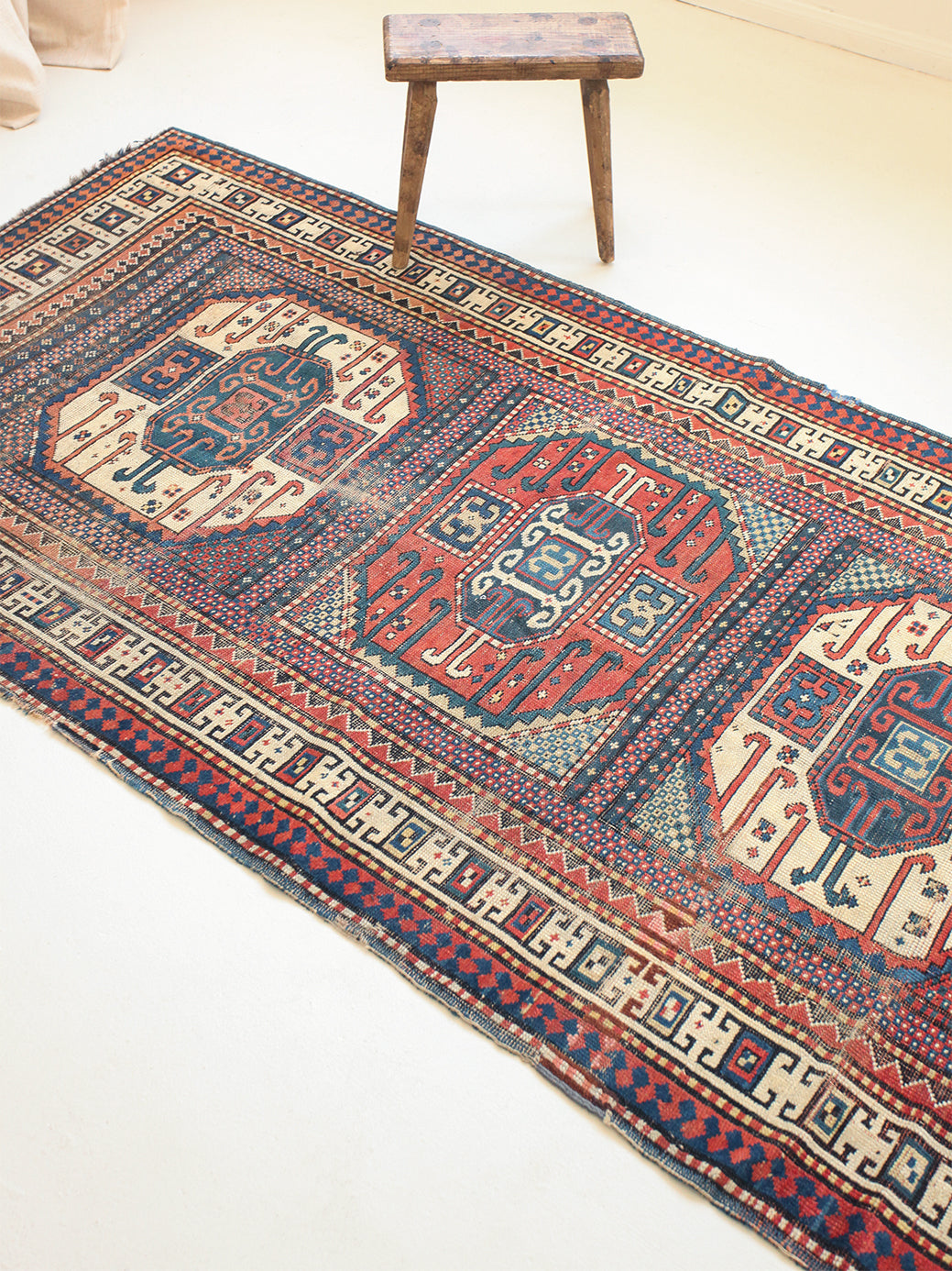 Kazak rugs stem from the Caucasus mountains which span modern-day Armenia, Azerbaijan and Georgia. The term refers to a wide range of rugs produced by weavers living in the regions' alpine villages, so stylistically there's quite a lot of variation. As a melting pot of culture, you'll notice a blend of Persian motifs, geometric Turkish patterns and Russian-inspired floral designs. Rug-making techniques were honed and passed down here, making Kazak rugs some of the most hard-wearing and ideal for high traffic areas.