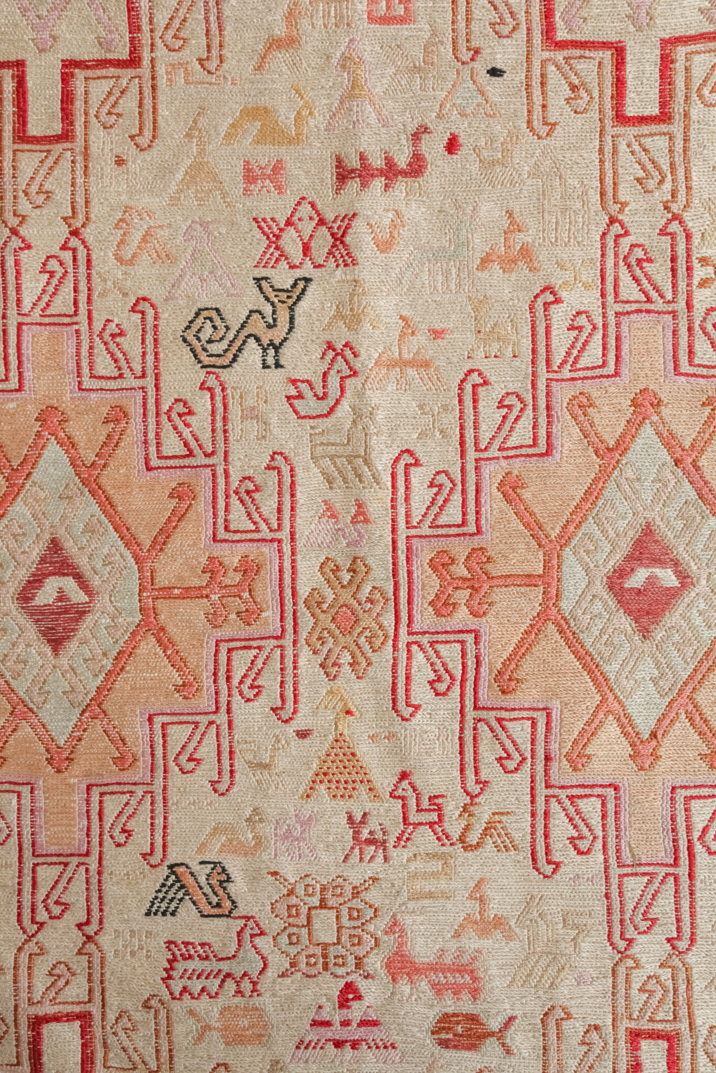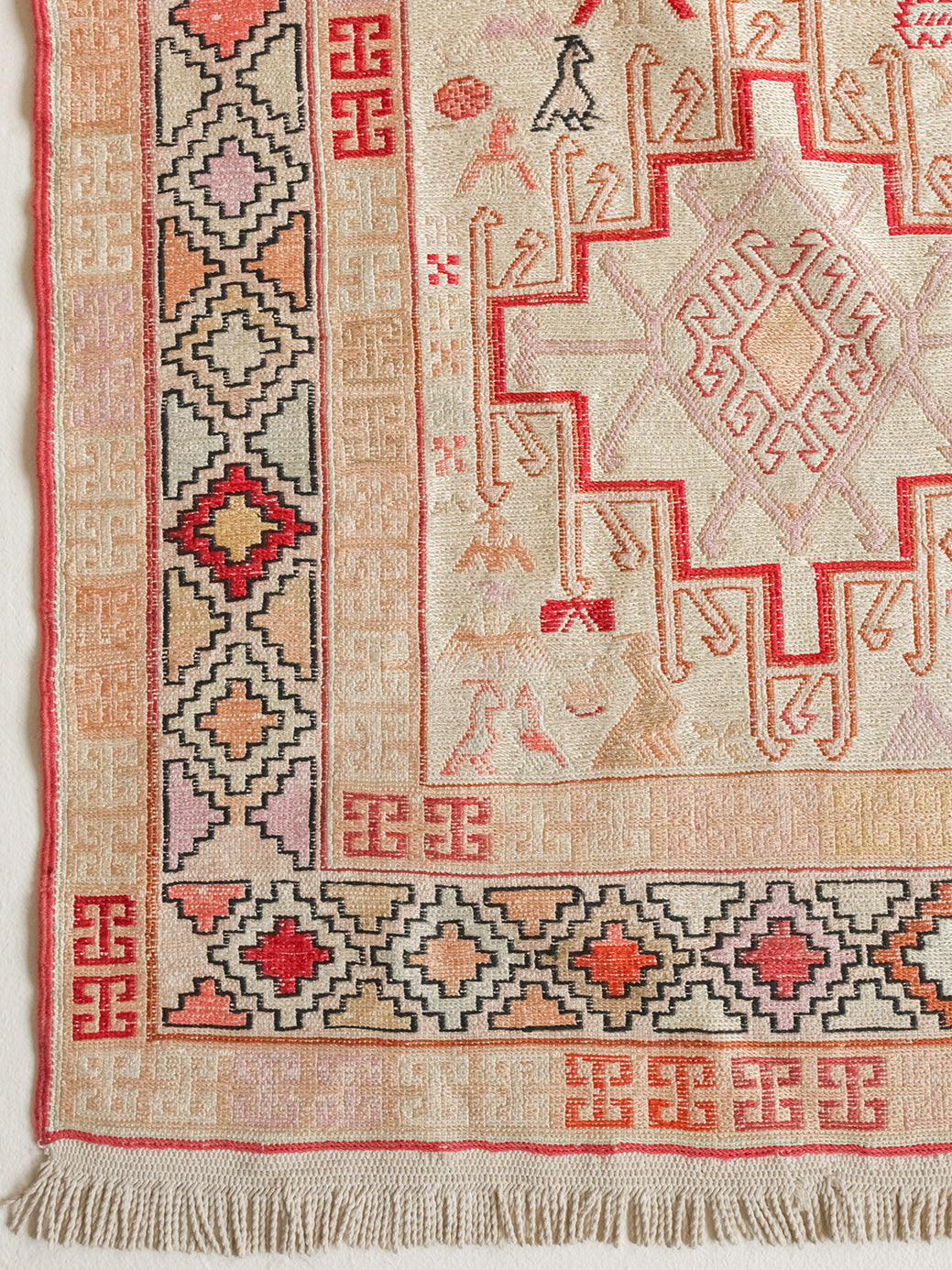 Unlike most of our rugs, the name Sumac refers not to the tribe or region, but the style and weaving technique. These flat-woven rugs have no pile at all, making them more like tapestries or kilims, albeit much stronger. The wool foundation is wrapped with colorful weft threads to form the design and provide additional support. It's these weft threads that you can see on the ragged underside of the rug - they were intentionally left loose to provide extra cushioning and warmth. The tribal, geometric designs are either medallions or all over patterns, with the ancient dragon style being the most coveted.