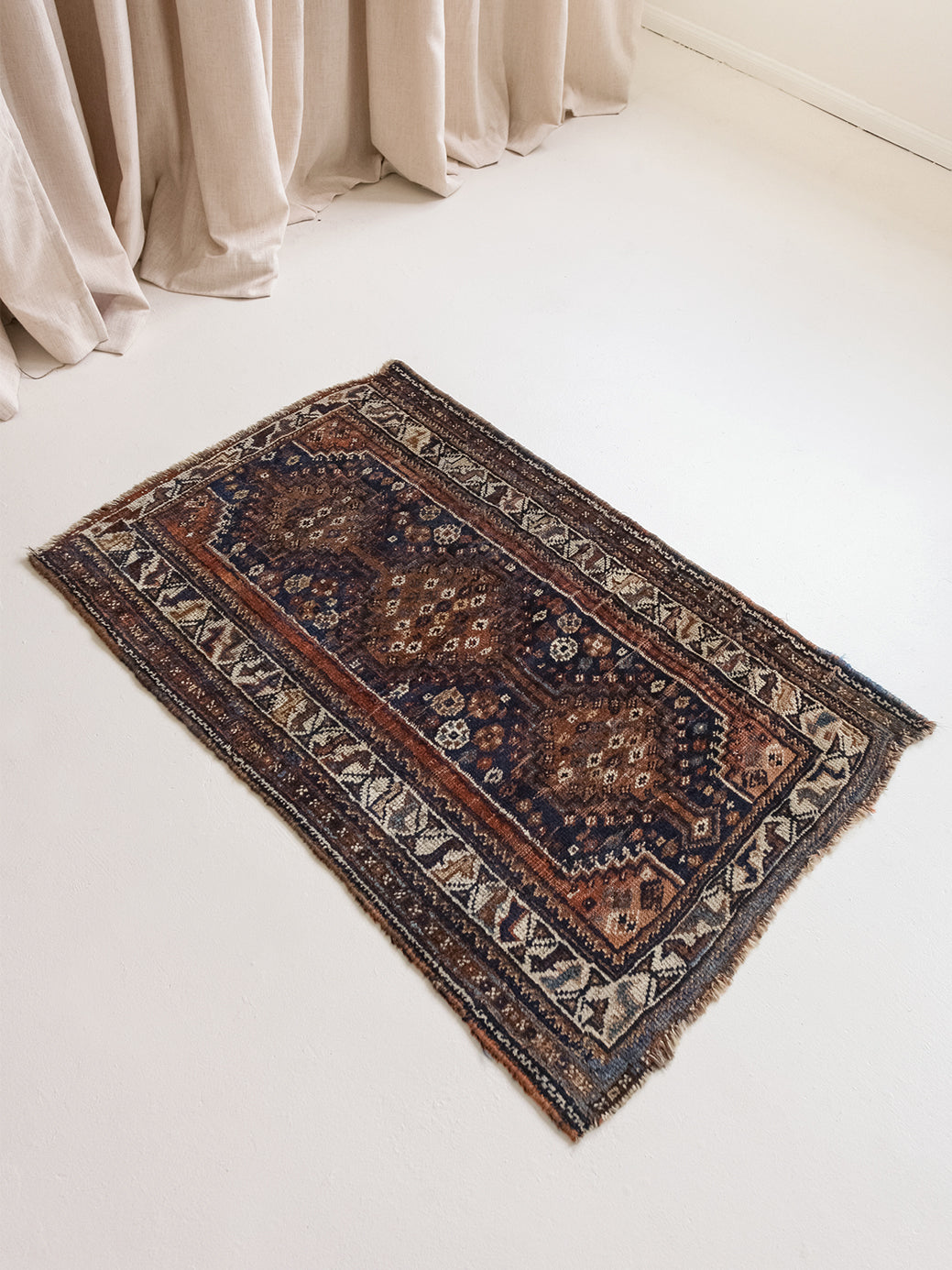 Because of the nature of these antique handmade rugs, irregularities are likely to exist and are not considered defects.