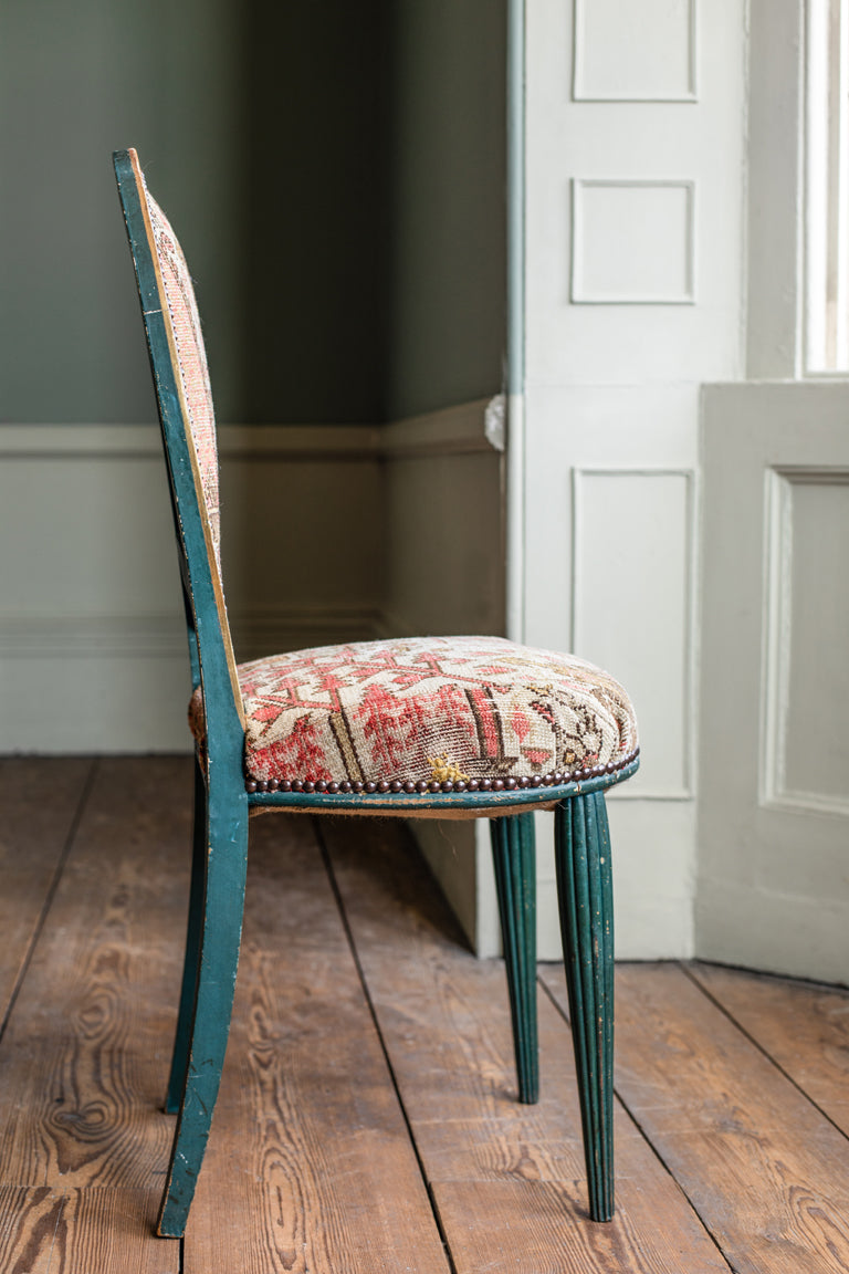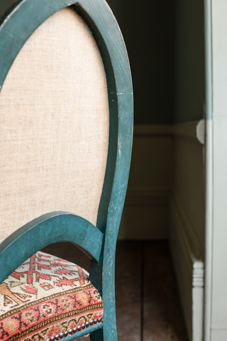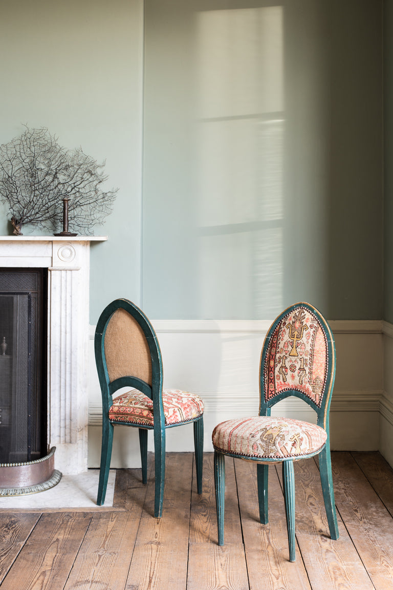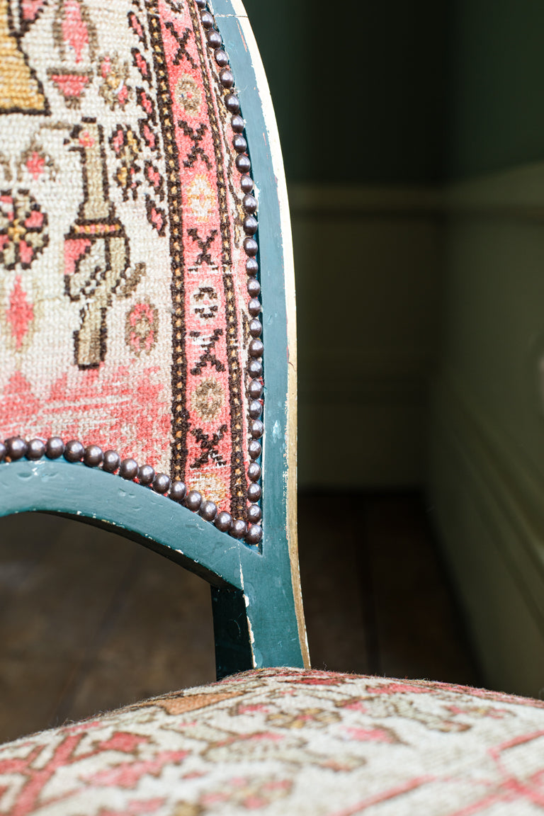 1920 Malayer rug paired with two 1900's French chairs.